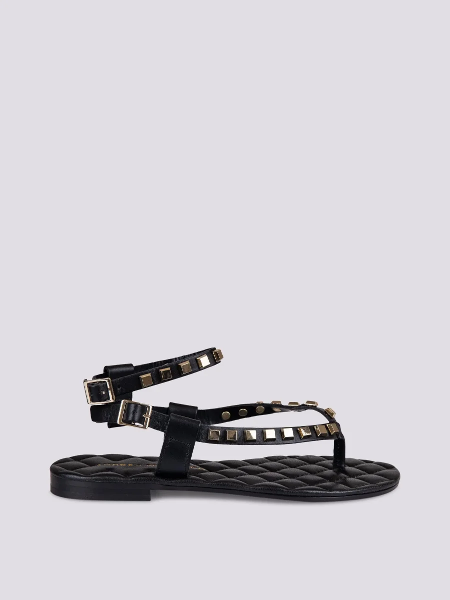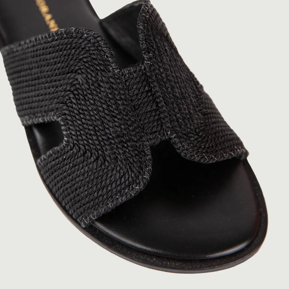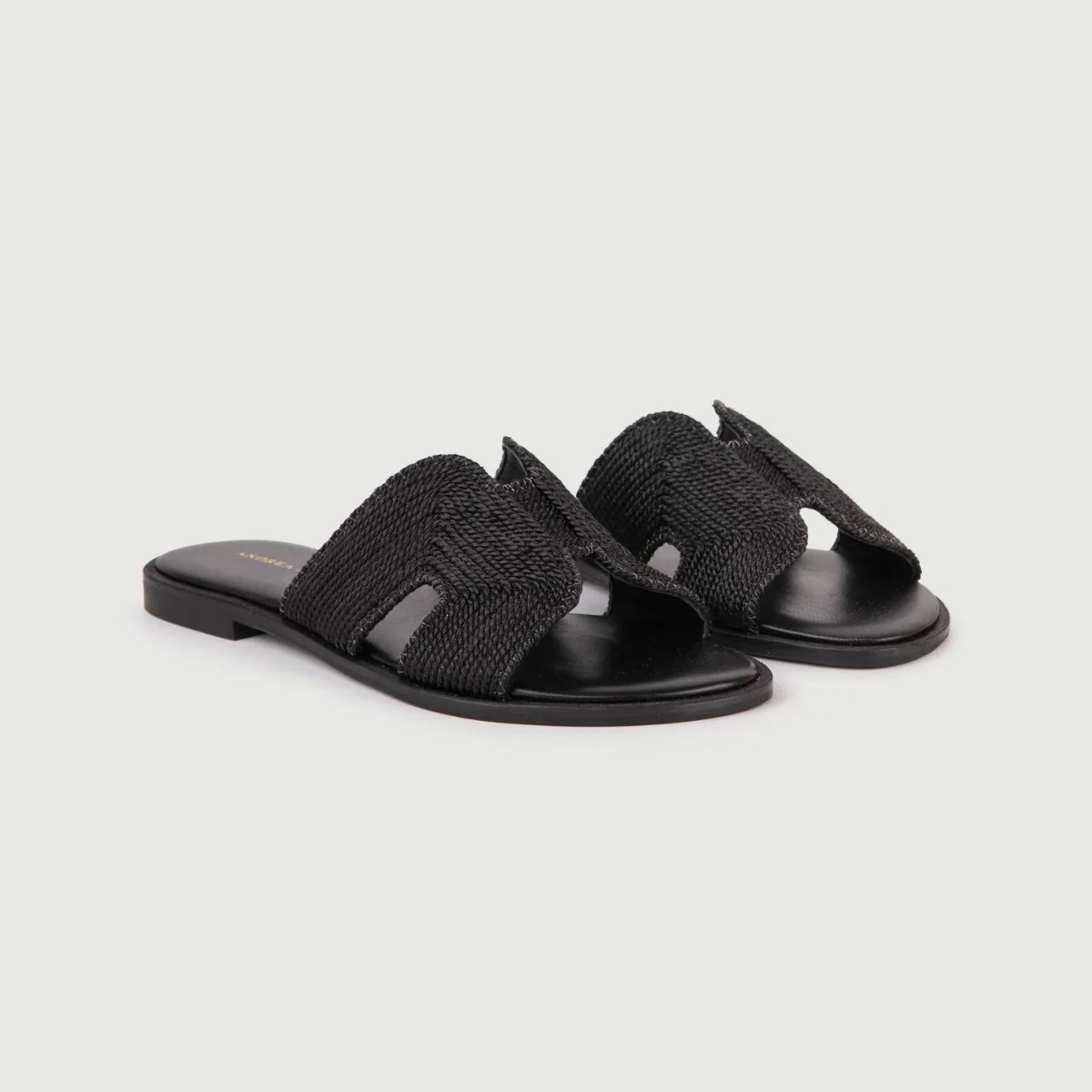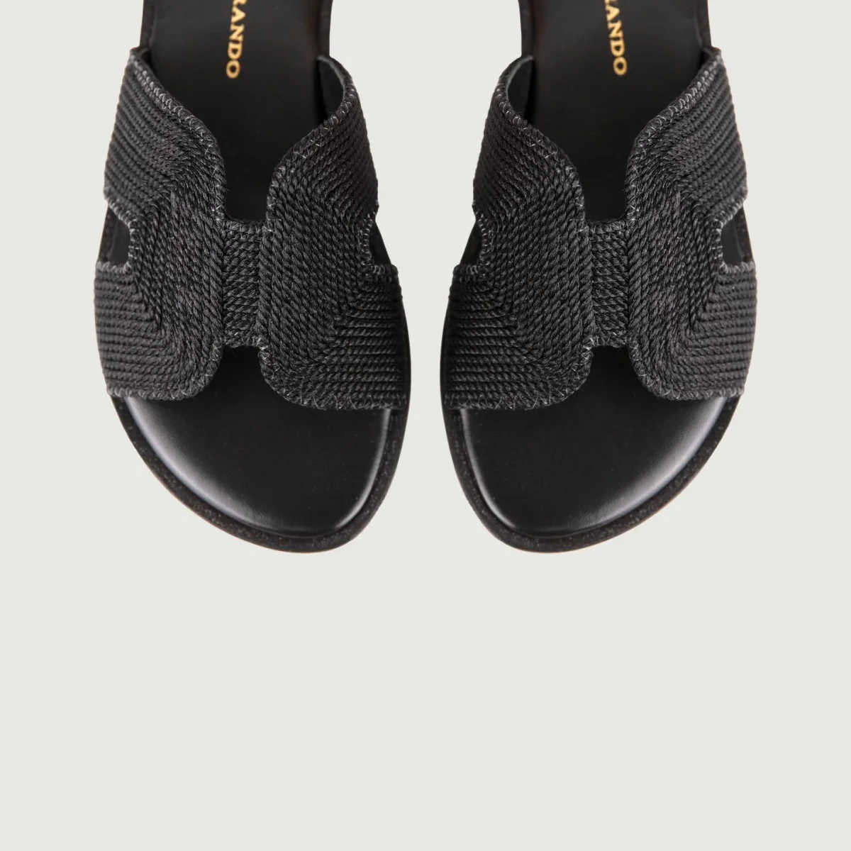 Ciabattina con fascia intrecciata e profili glitter color nero.