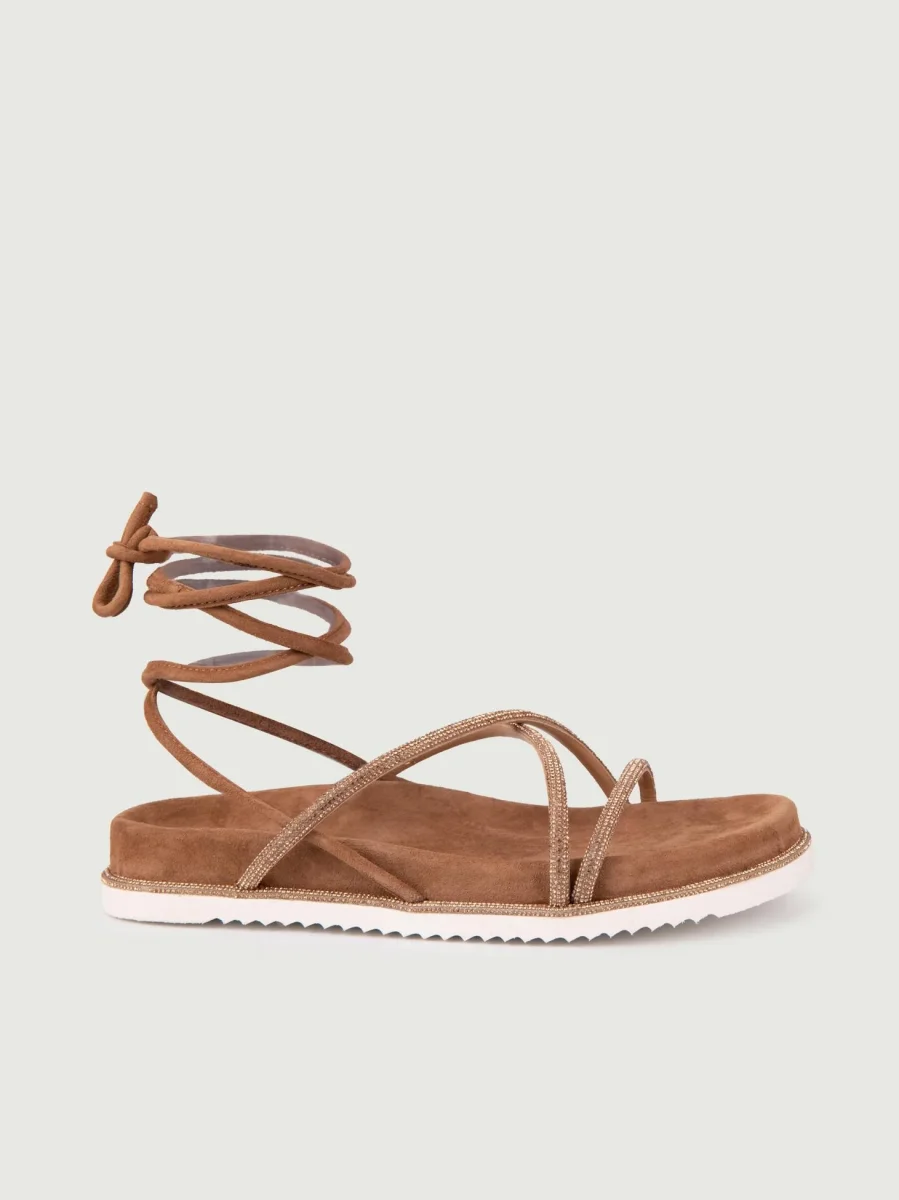 Ciabattina marrone con fascia in rafia.