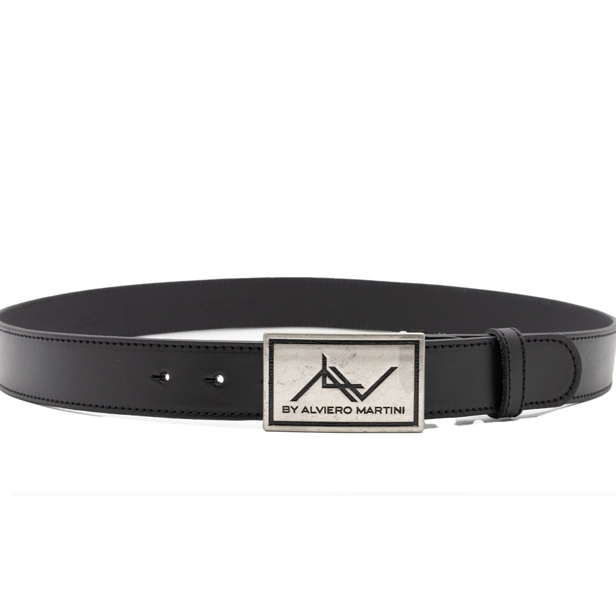 Cintura da uomo ALV by Alviero Martini, caratterizzata da una fibbia rettangolare con logo inciso che richiama lo stile iconico del brand. Realizzata con materiali resistenti e finiture di pregio, è l’accessorio ideale per completare outfit eleganti o casual con un tocco distintivo e raffinato.