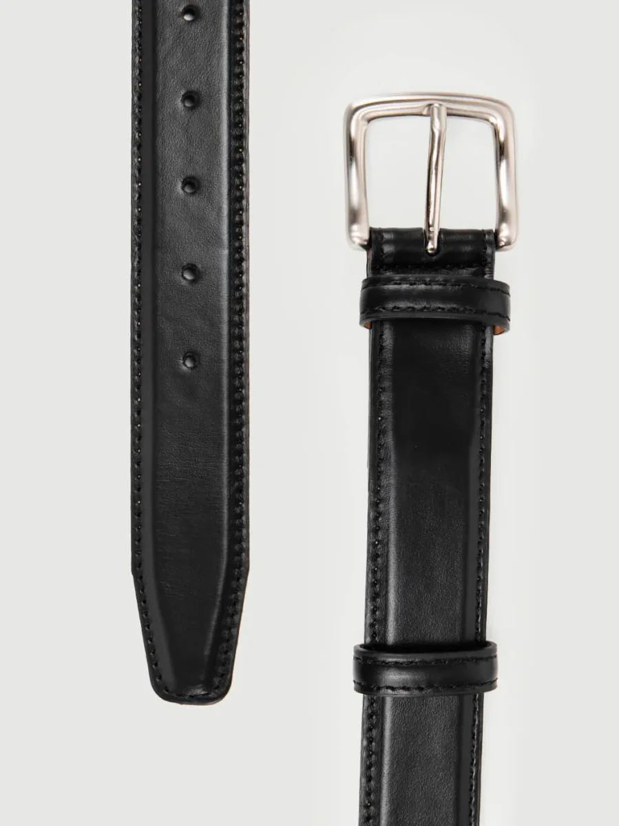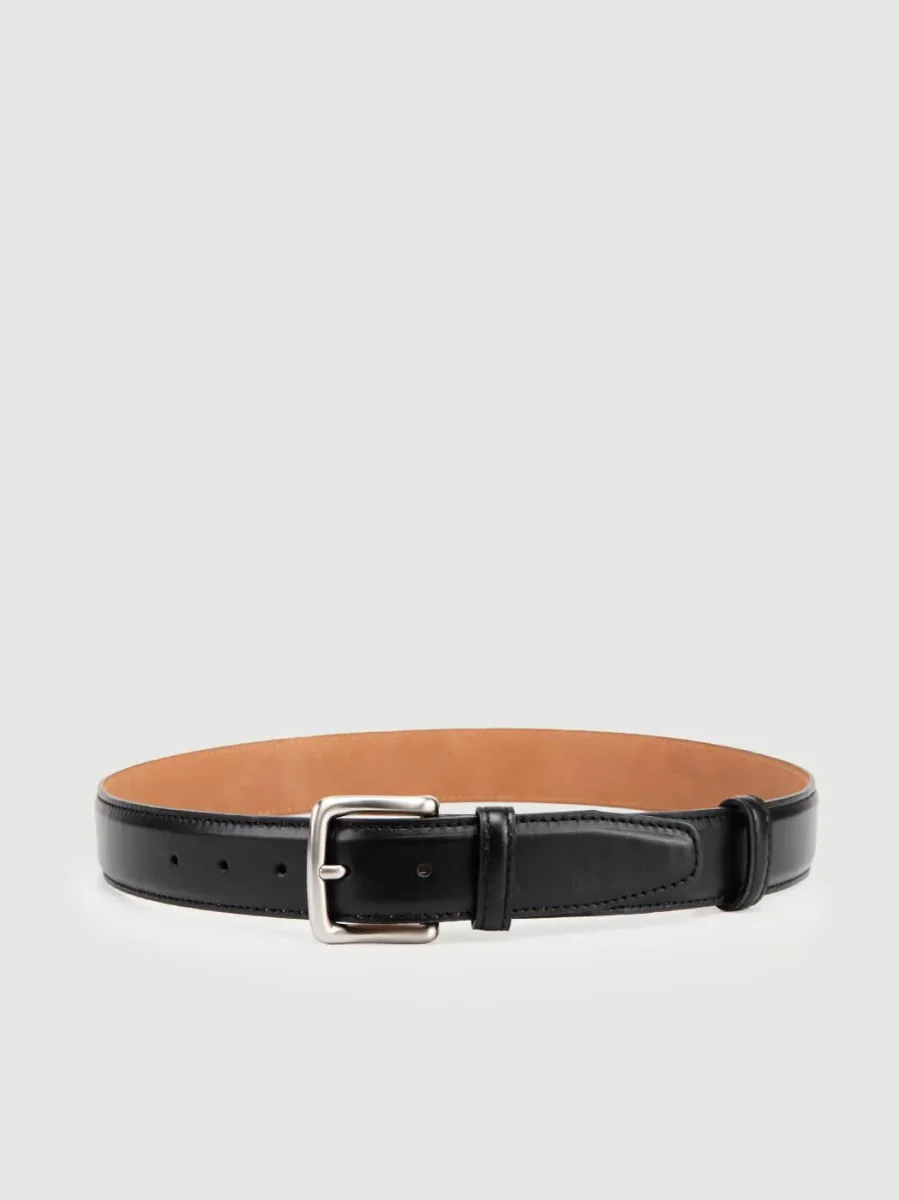 Cintura 3cm in pelle nera con fibbia in metallo argento.