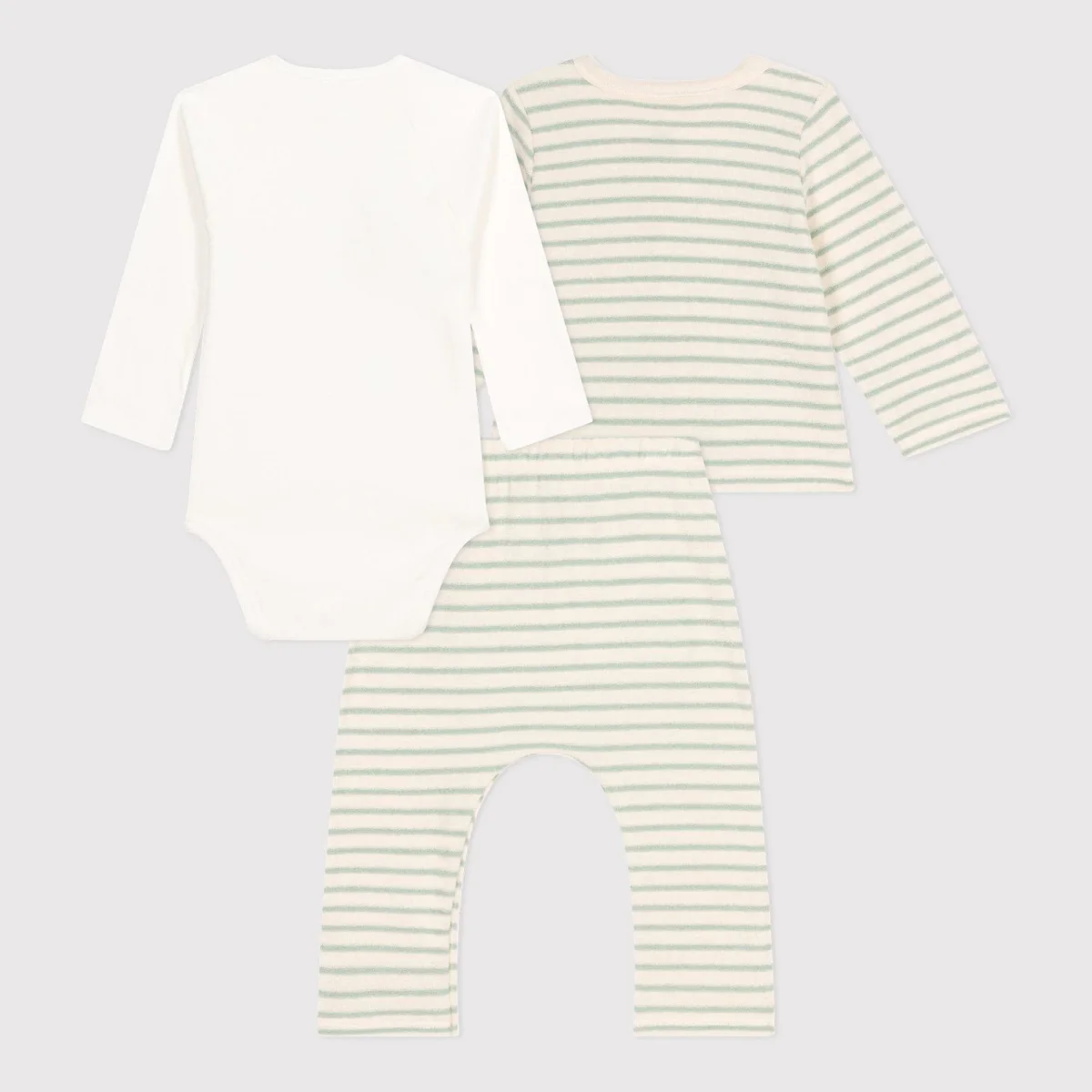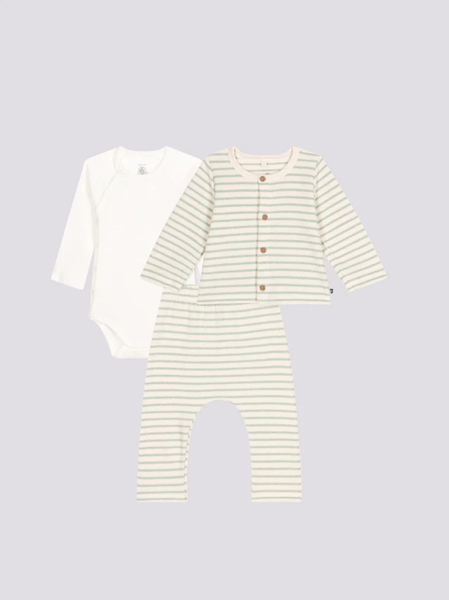 COMPLETO 3 PEZZI BEBÈ IN SPUGNA BOUCLETTE A RIGHE
