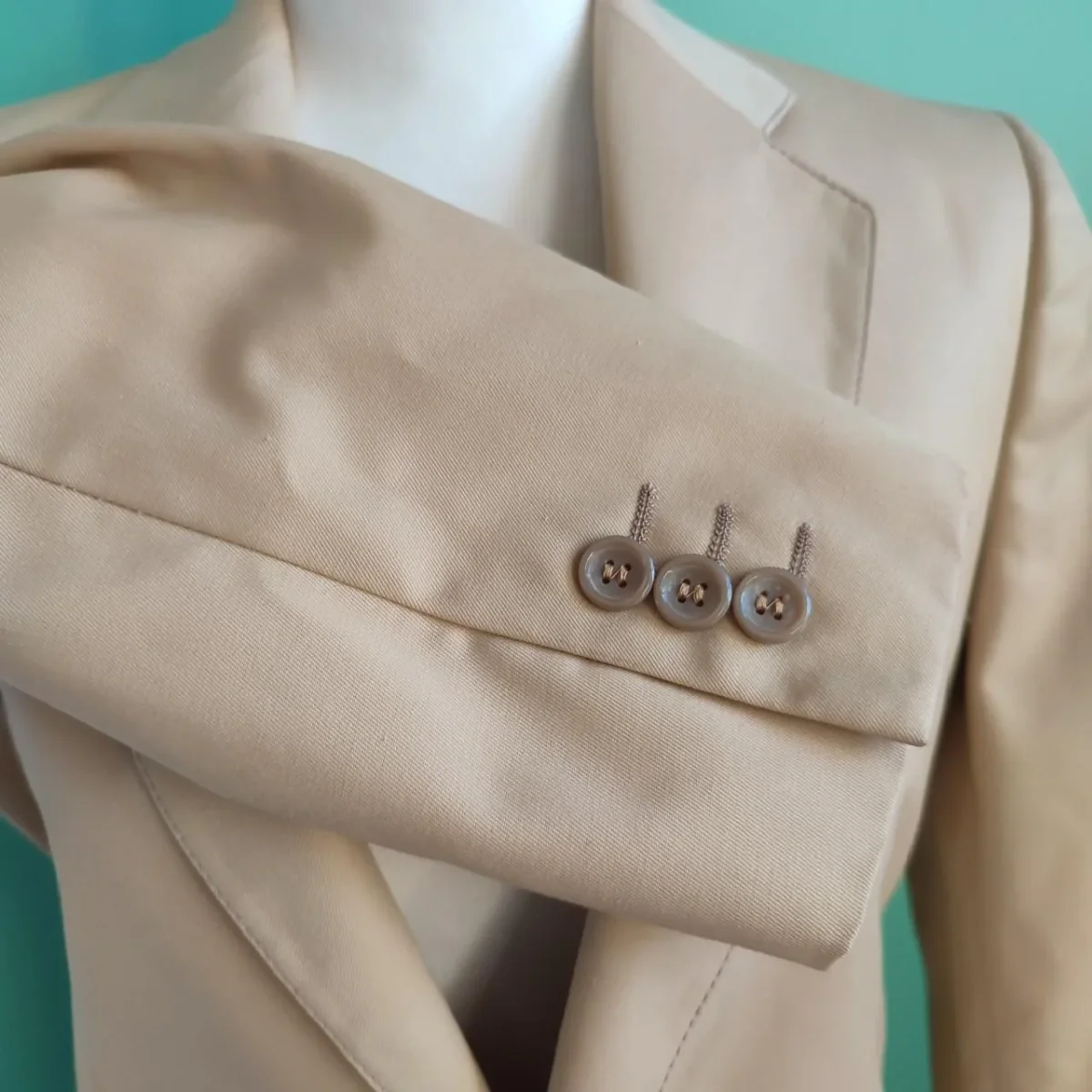 Completo da uomo Vintage. Taglia non presente, ma a vista una M. Anche la composizione non è presente, ma al tatto Cotone e Altre Fibre. Colore Beige. La giacca ha il rever classico, le tipiche tre tasche, quella sul petto a filetto, mentre quelle in vita sono applicate, due bottoni in tonalità a chiusura. Le maniche hanno i fessini, sempre chiuse entrambe da tre bottonicini, in tinta. Le spalle sono imbottite per conferire maggiore struttura al capo. Internamente la mezza fodera sulle spalle e nelle maniche. I pantaloni con la piega centrale, le tasche a filetto diagonale e il fascione alto cm. 3 con i relativi passanti e la barretta metallica interna a chiusura oltre che alla cerniera, celata dalla finta, è di cm. 17. Il modello classico è un evergreen nei completi maschili. Buone condizioni