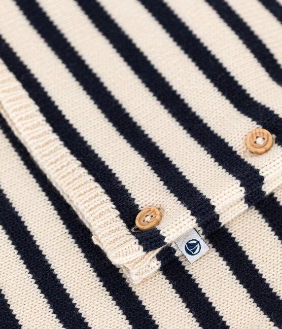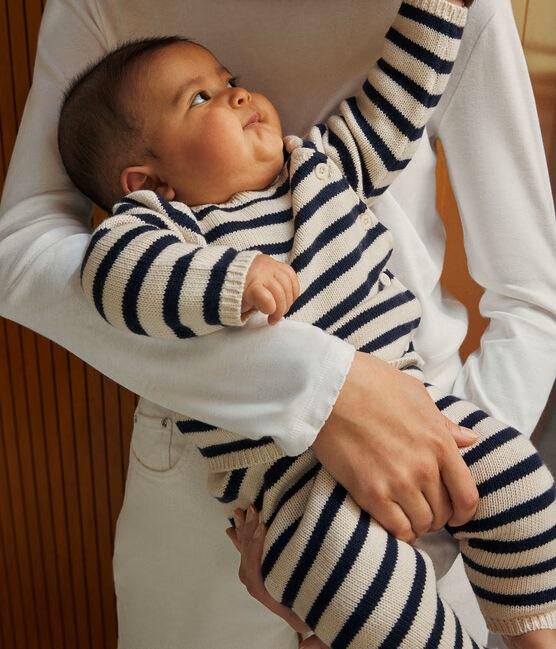 Completo composto da pantaloni e coprifasce in lana e cotone, ideale per tenere al caldo il bebè fin dai primi giorni di vita, a righe marinière blu smoking e bianco avalanche