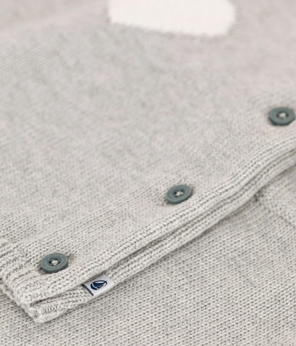 Irresistibile motivo jacquard a forma di cuore sul davanti del cardigan.
