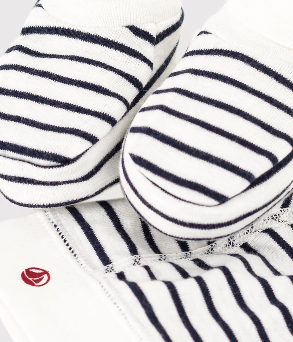 Cuffietta nascita e babbucce unisex a costine, il tessuto emblematico di Petit Bateau.