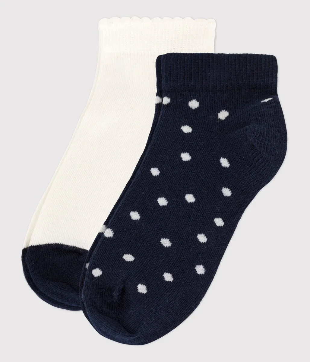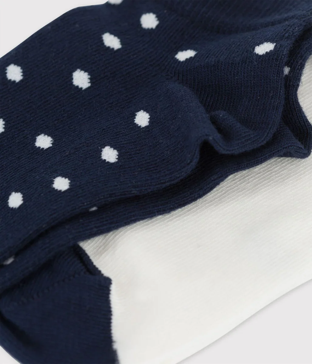 Confezione da due paia di calzini in cotone elastan, un paio tinta unita e un paio a pois.