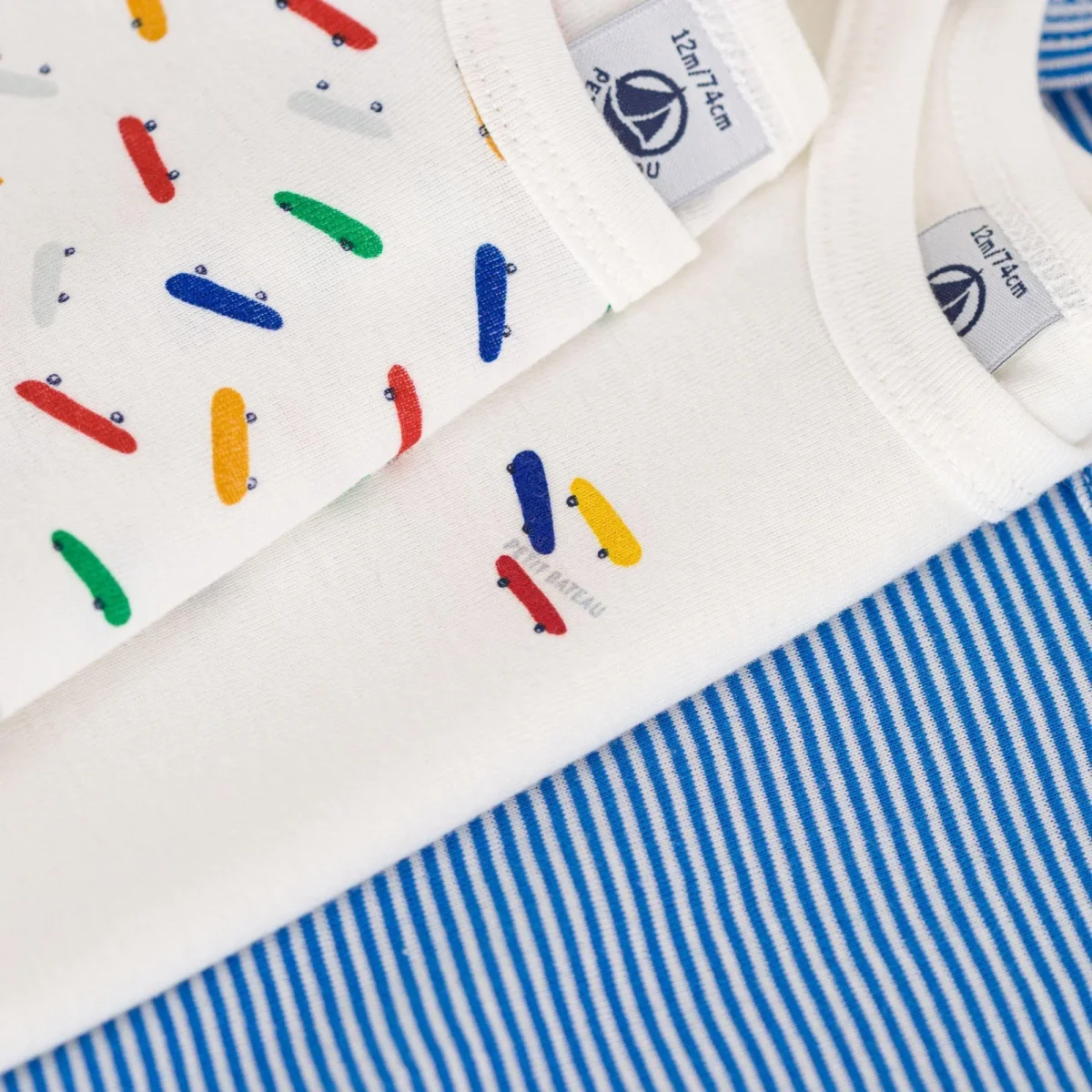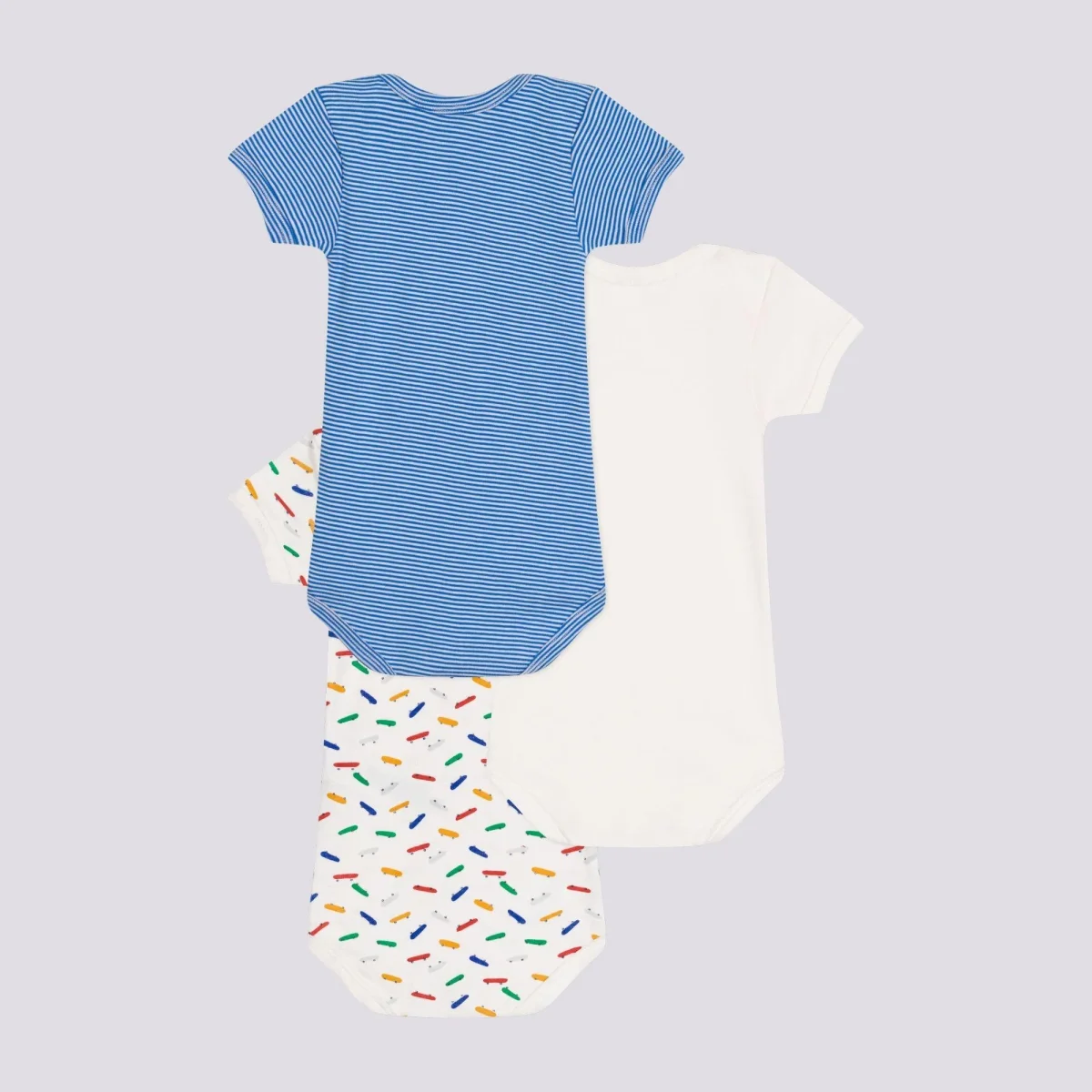 Confezione da 3 body a maniche corte unisex a costine, il tessuto emblematico di petit bateau.