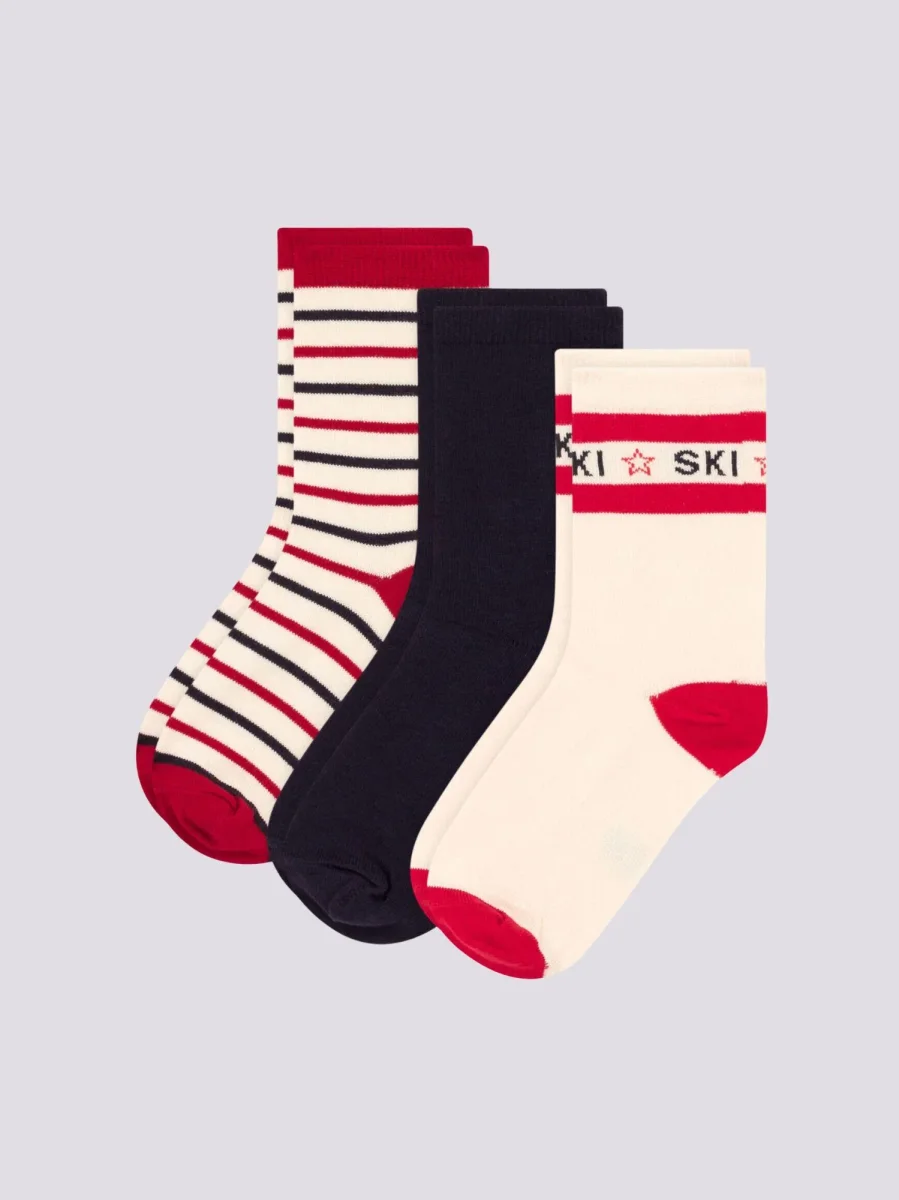 Confezione da 3 paia di calzini in jersey di cotone. Si tratta di un materiale spesso e morbido al tatto, con una buona tenuta, che offre autentico comfort e durata.