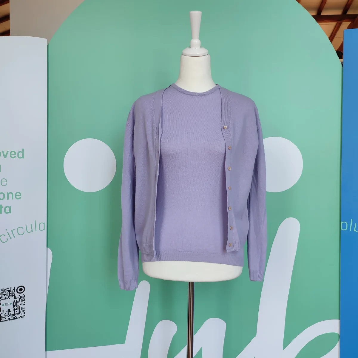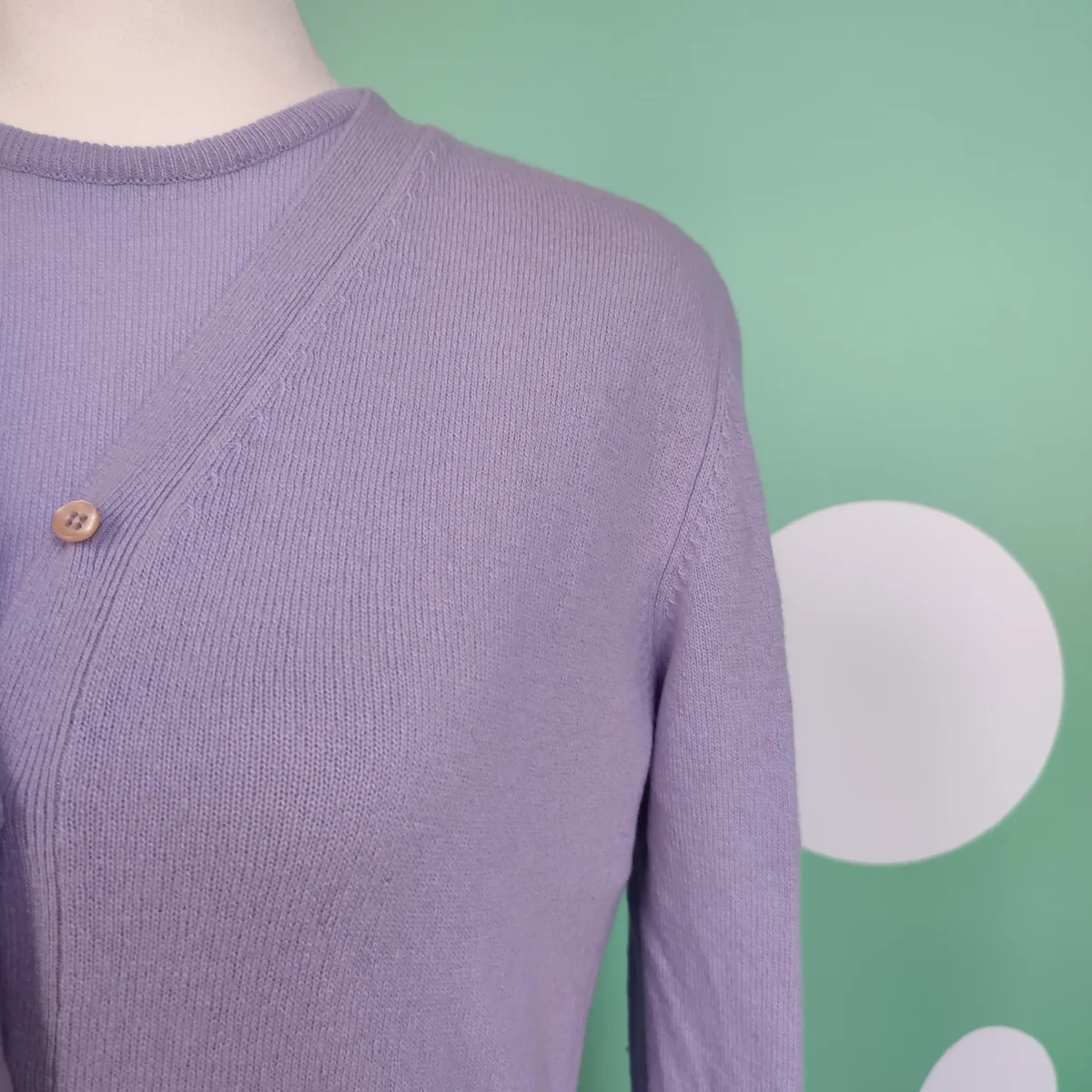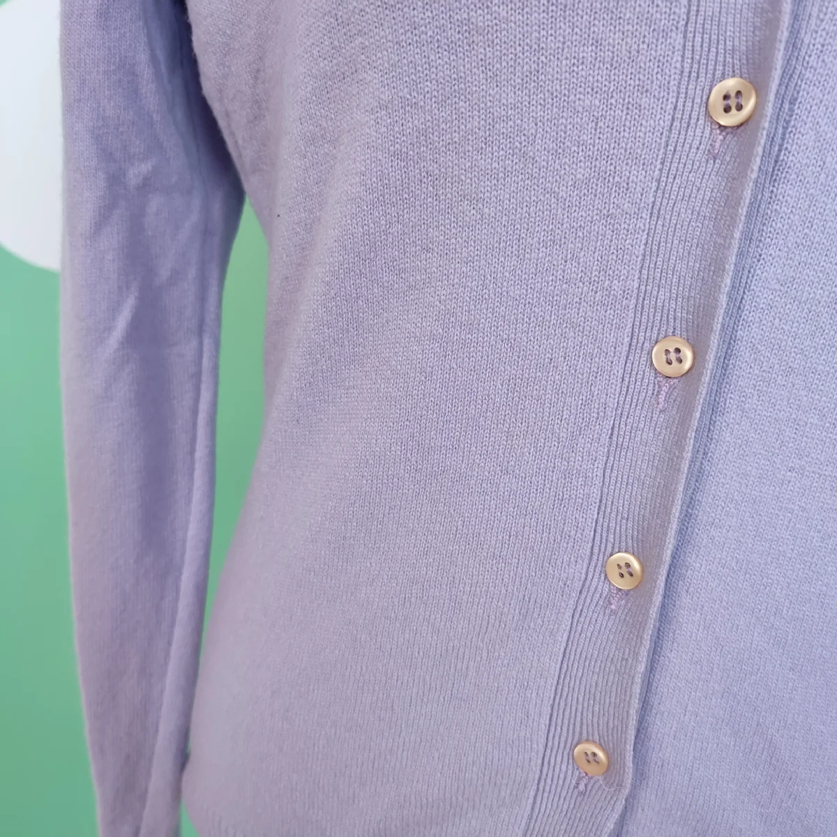 Coordinato t-shirt e cardigan Benetton, tg S, colore lilla. Chiusura frontale con sette bottoni. In
