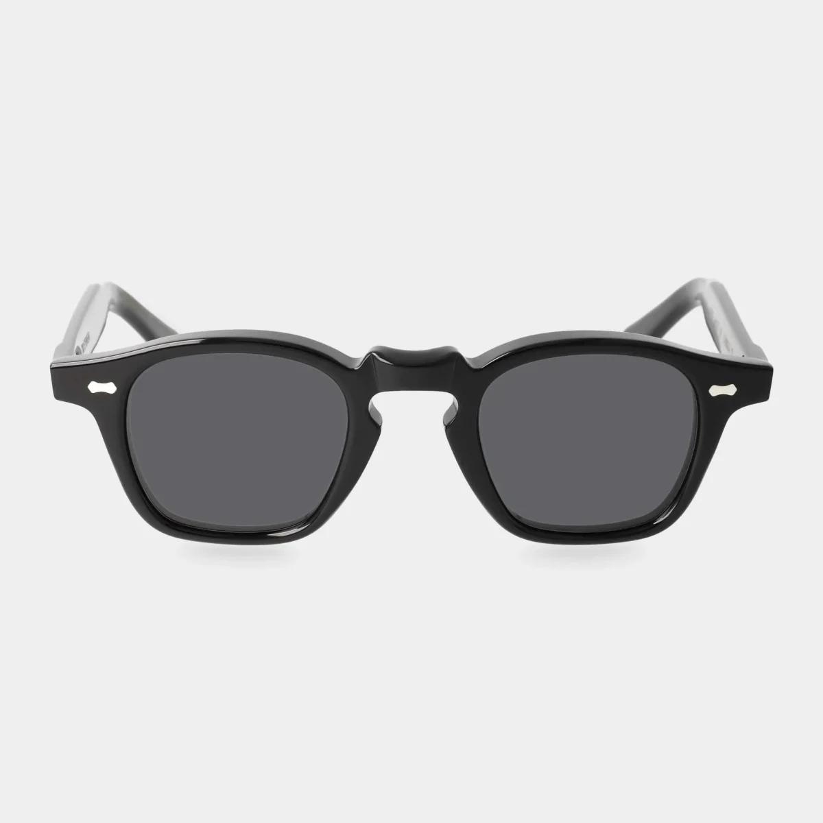 Questi occhiali da sole squadrati donano armonia tra le geometrie della montatura e il classico colore nero enfatizzando le proporzioni. Realizzati a mano in Italia in bioacetato e lenti bio-based, perfetti per lei e per lui.