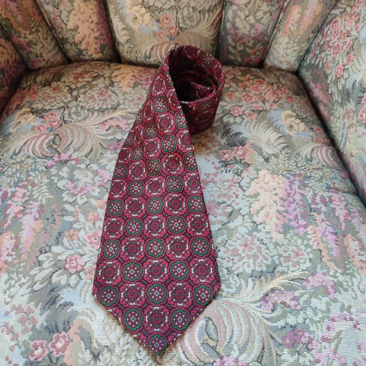 Cravatta in ottime condizioni, senza nessun difetto. La marca è Burberry originale, il tessuto è composto al 100% di seta. Si presenta di colore nero con delle strisce trasversali di colore giallo e rosso, con il logo della maison su tutta la lunghezza della cravatta.