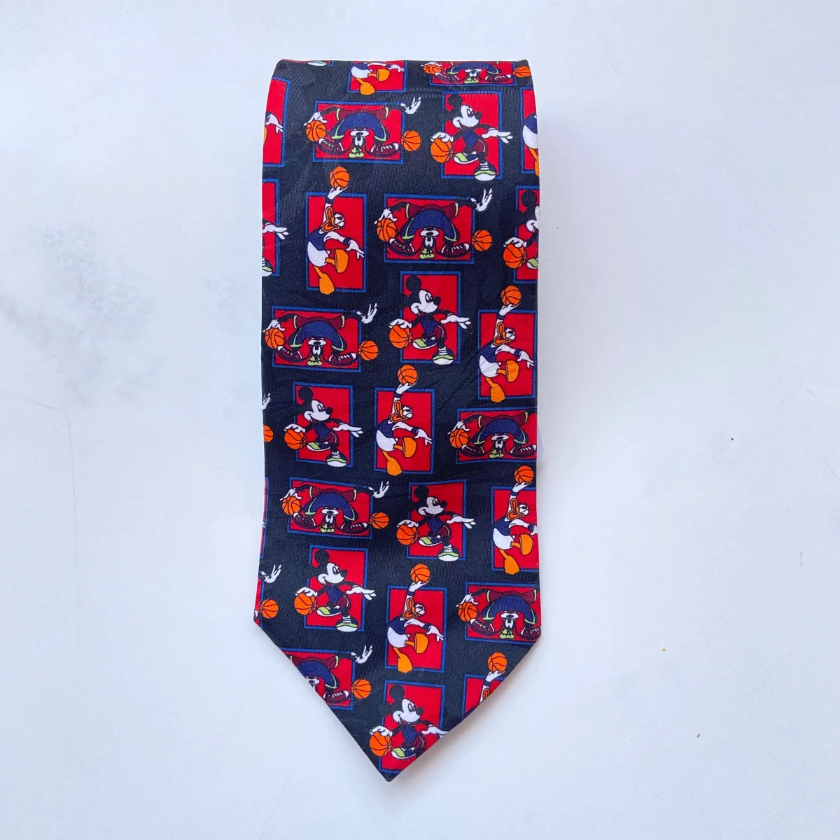 Cravatta con personaggi Disney che giocano a basket. In arrivo dagli states.