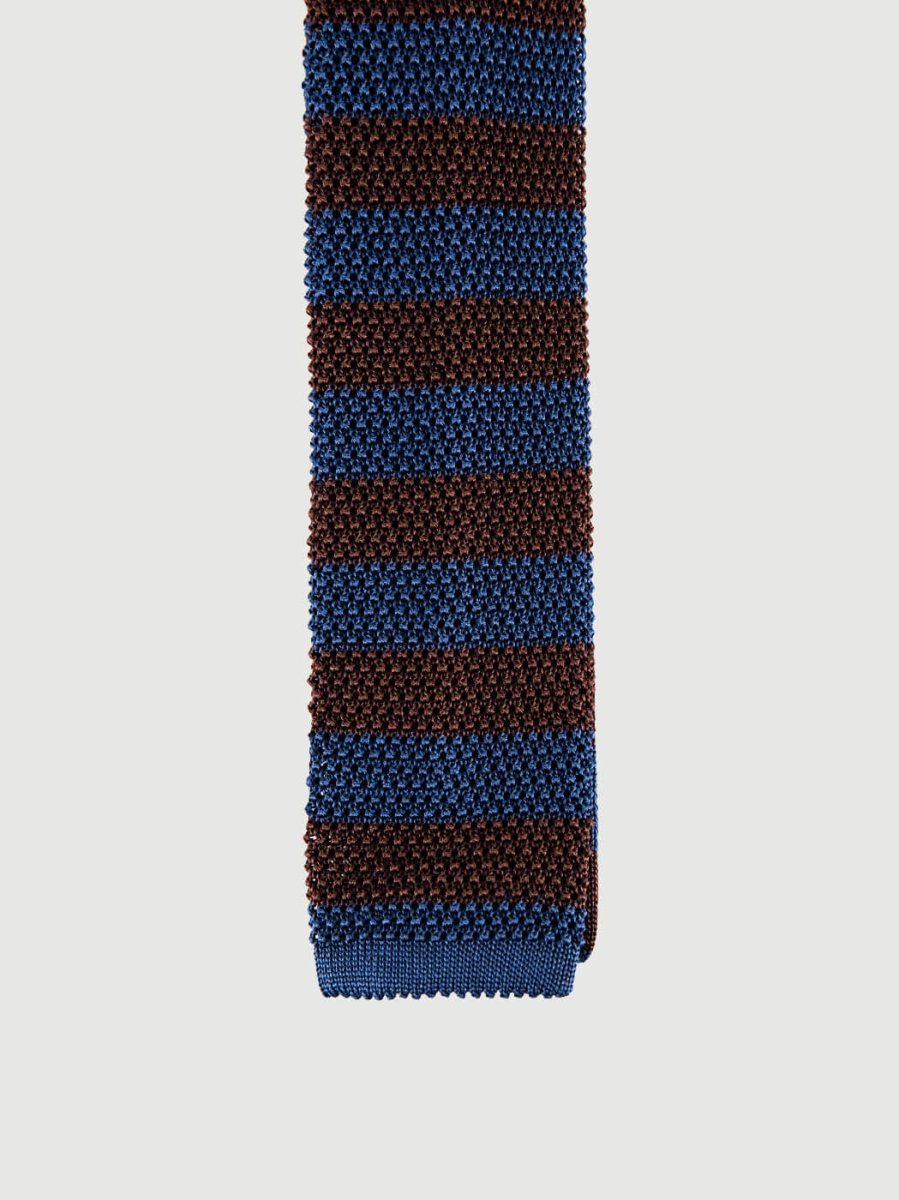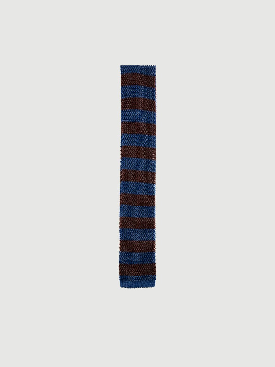 CRAVATTA TRICOT IN SETA BLUETTE A RIGHE MORO
