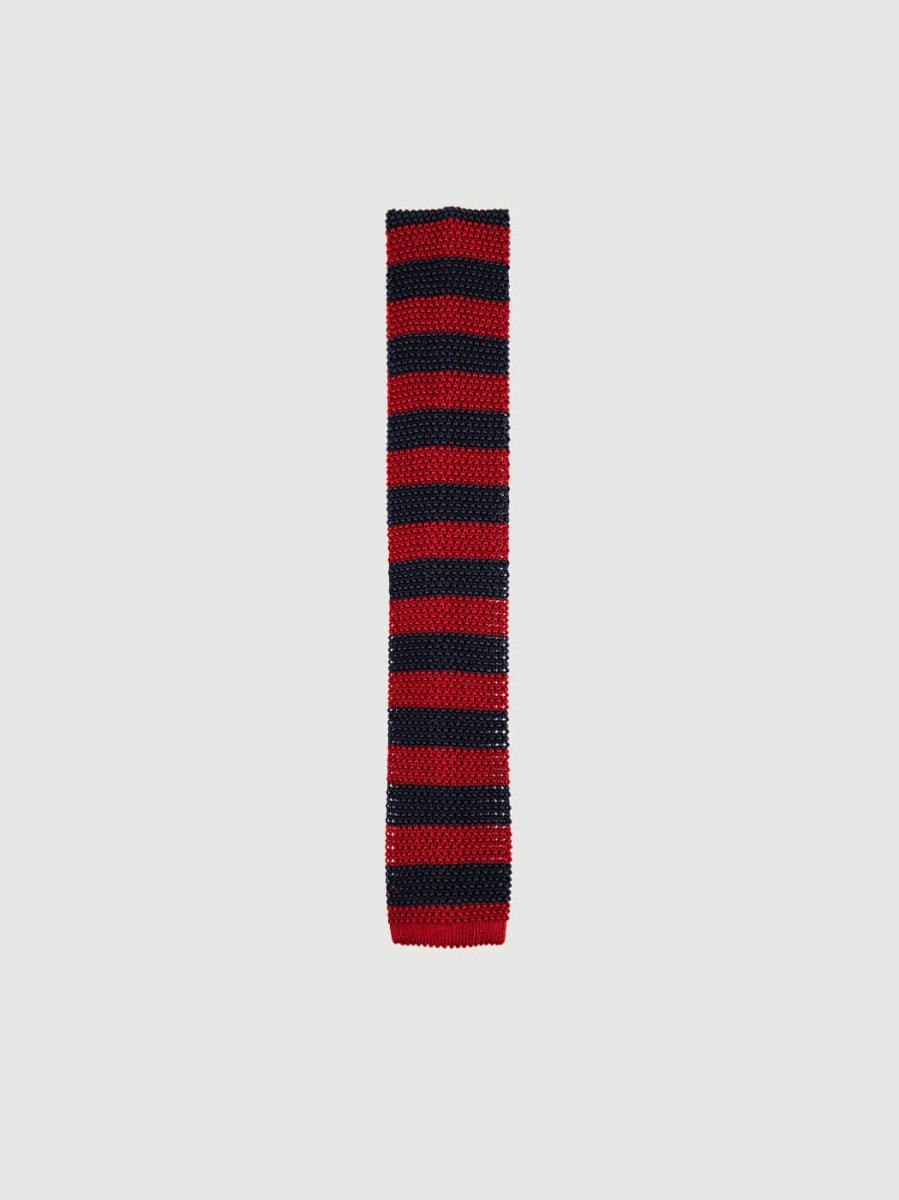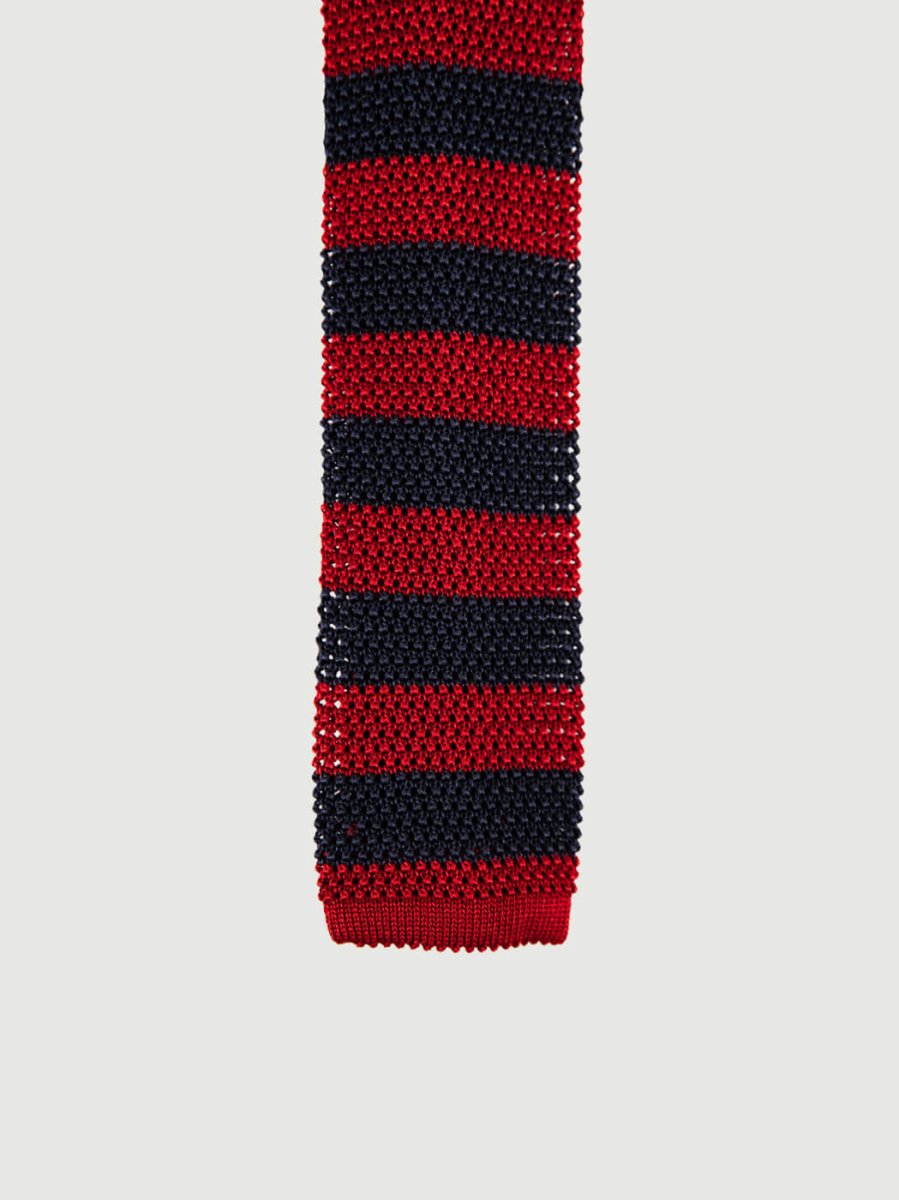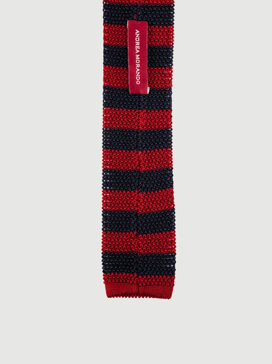 CRAVATTA TRICOT IN SETA ROSSA A RIGHE NAVY