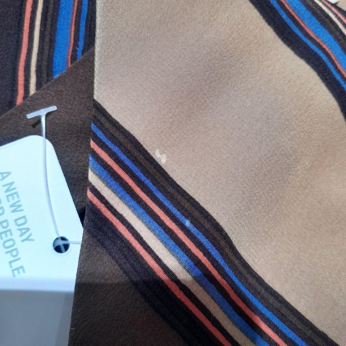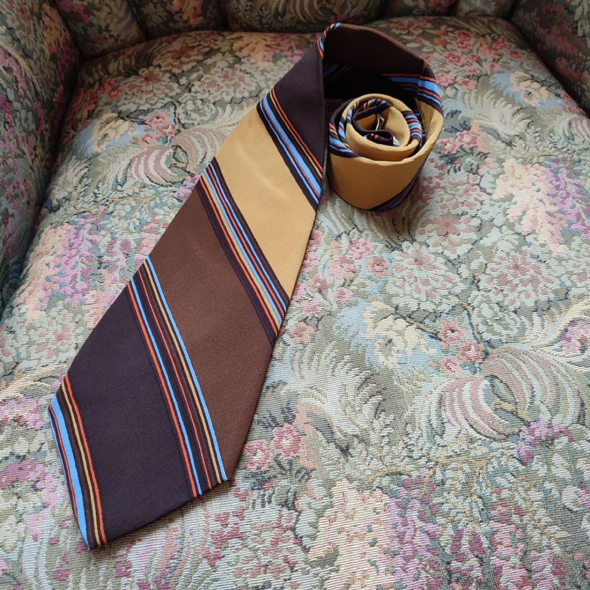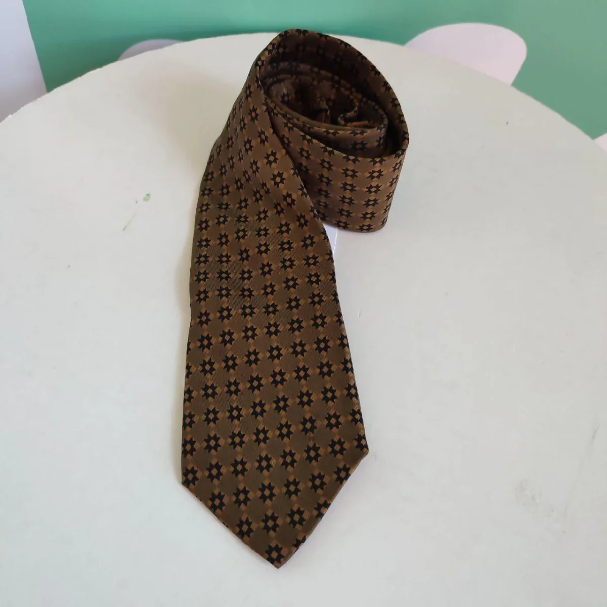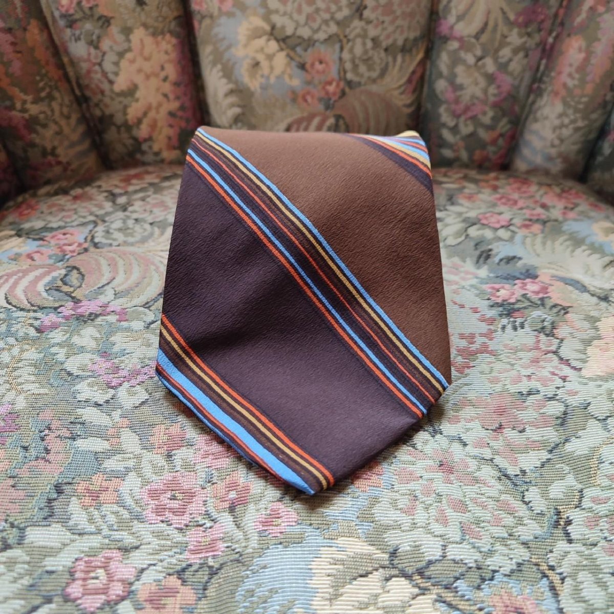 Cravatta 100% Seta. Marca Yves Saint Laurent. Fantasia regimental nelle tonalitè del Marrone Testa di Moro, Marrone Tabacco e Ocra Scuro, con Parti Multicolor a contrasto e in tonalità. La seta utilizzata è di altissima qualità. Internamente, nella punta piu’ larga il logo del Brand. Mentre, nella punta piu’ stretta, esternamente, le cifre della Maison, sono nella stampa del tessuto, su fondo Bianco. Accessorio che conferisce estrema eleganza a chi lo indossa. Una piccolissima macchiolina, come da foto, che non ne pregiudica la bellezza. Buone condizioni.