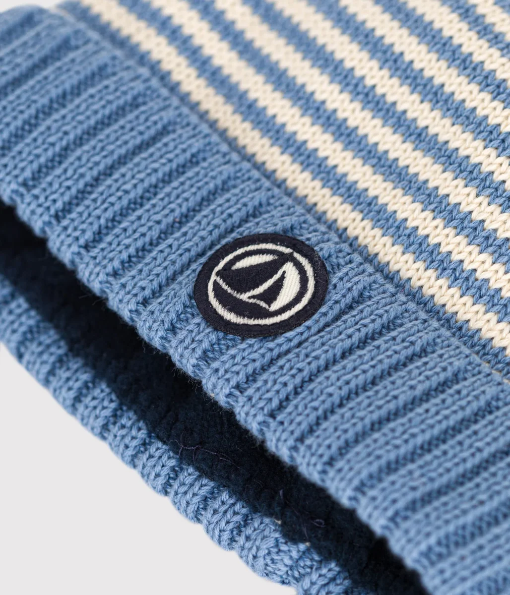 Cuffietta unisex in maglia a righe di cotone con fodera in micropile, per tenere al caldo i più piccini.