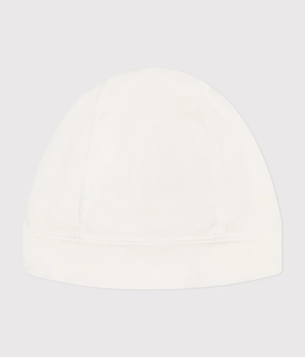 Cuffietta per i primi mesi in cotone bianco con logo Petit Bateau