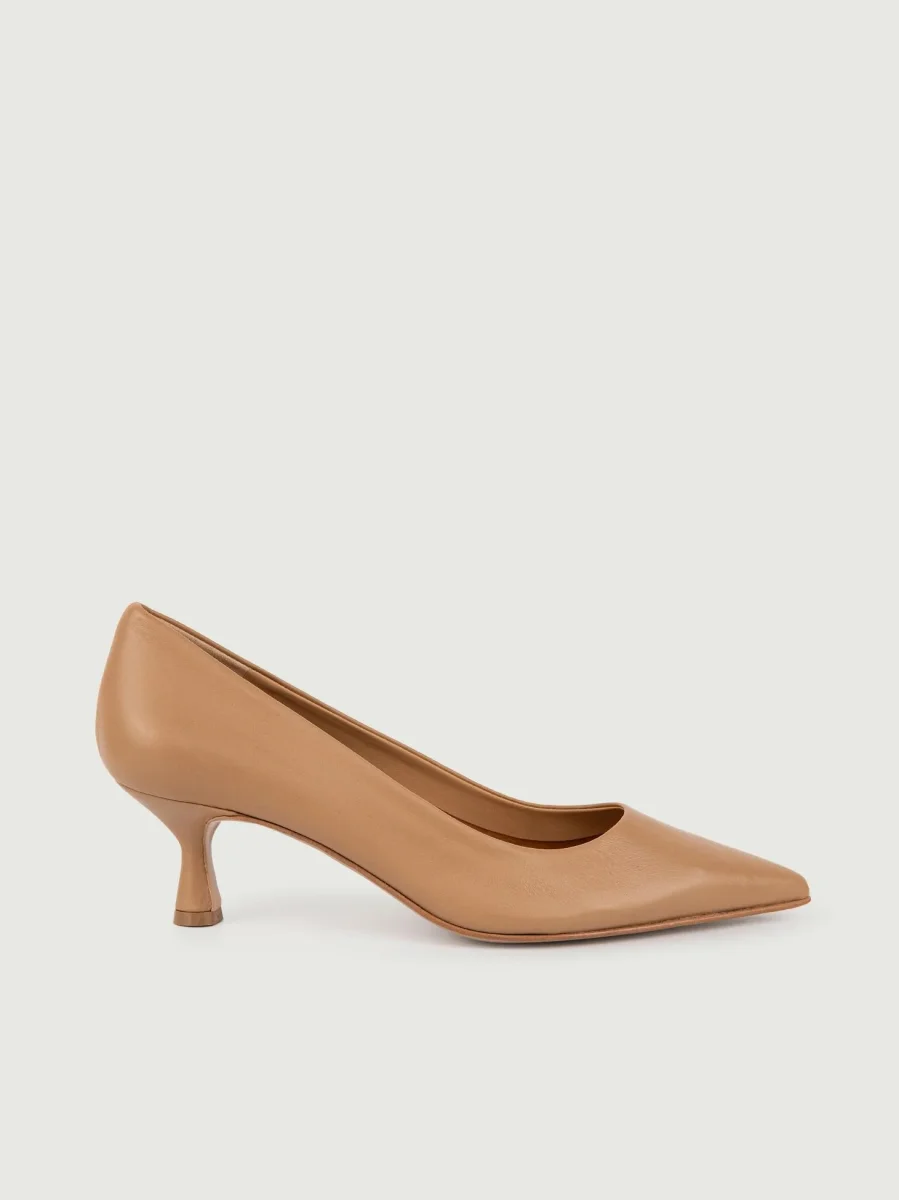 Décolleté in pelle color legno.