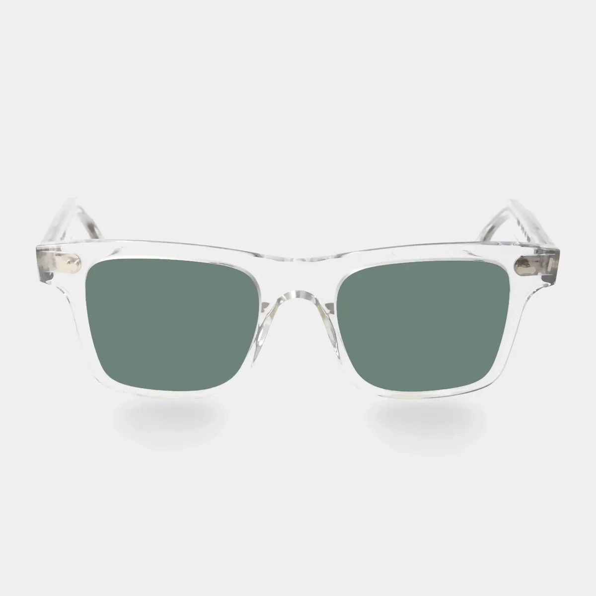 L’audace montatura da sole in bioacetato trasparente è la nostra interpretazione del design Made in Italy contemporaneo, grazie allo stile unico delle forme e all’abbinamento con lenti verdi bio-based. Perfetti per lei e per lui.