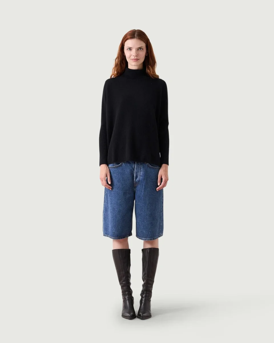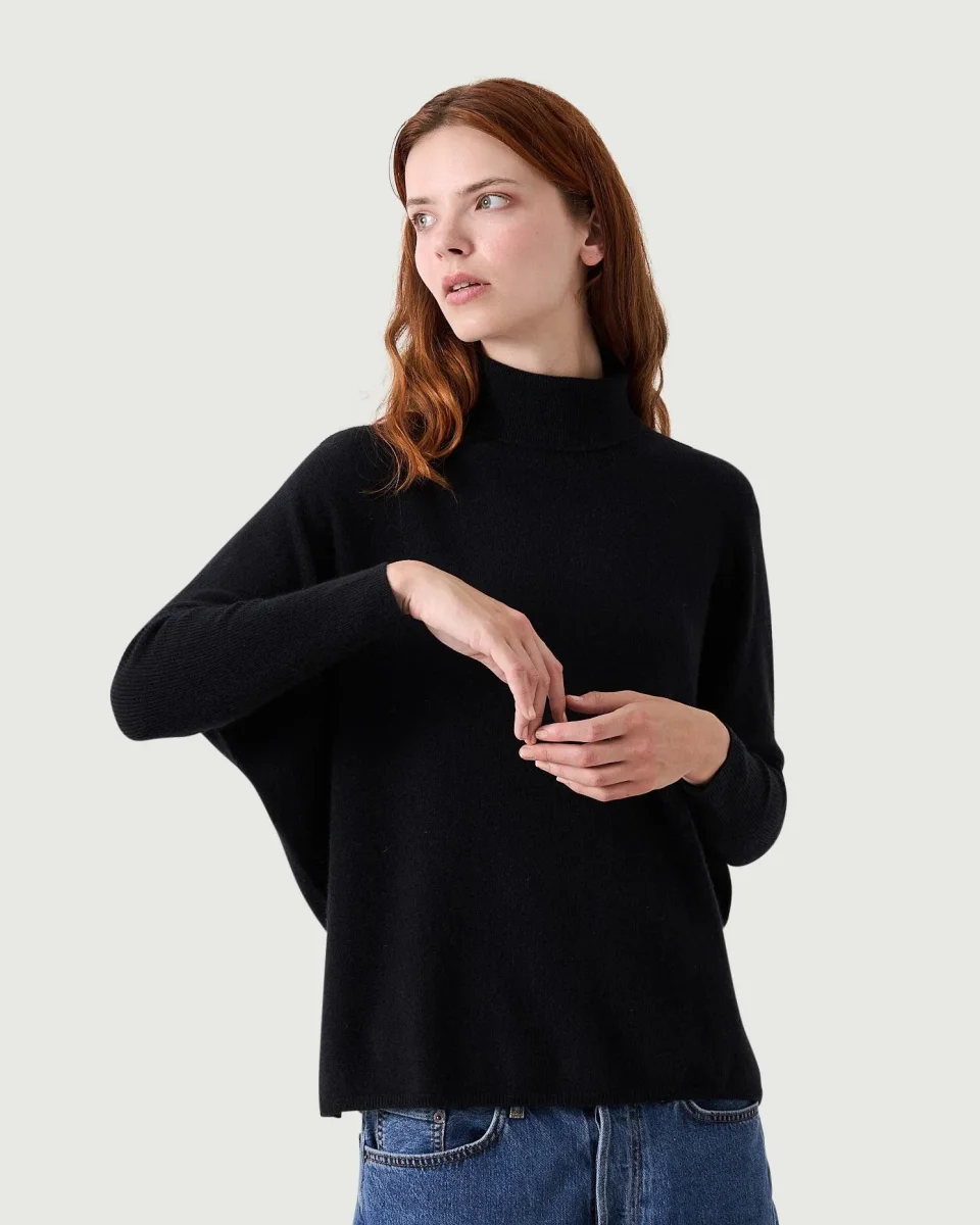 Maglia poncho dolcevita in cashmere da donna