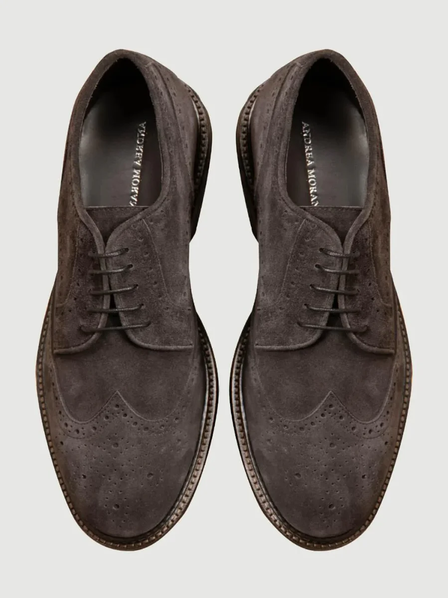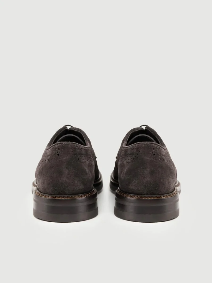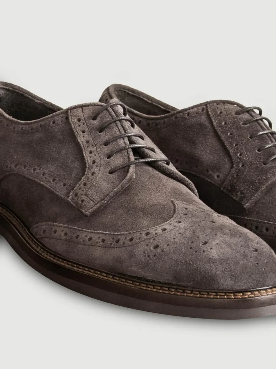 Dettaglio lavorazione brogue coda di rondine sulla tomaia.