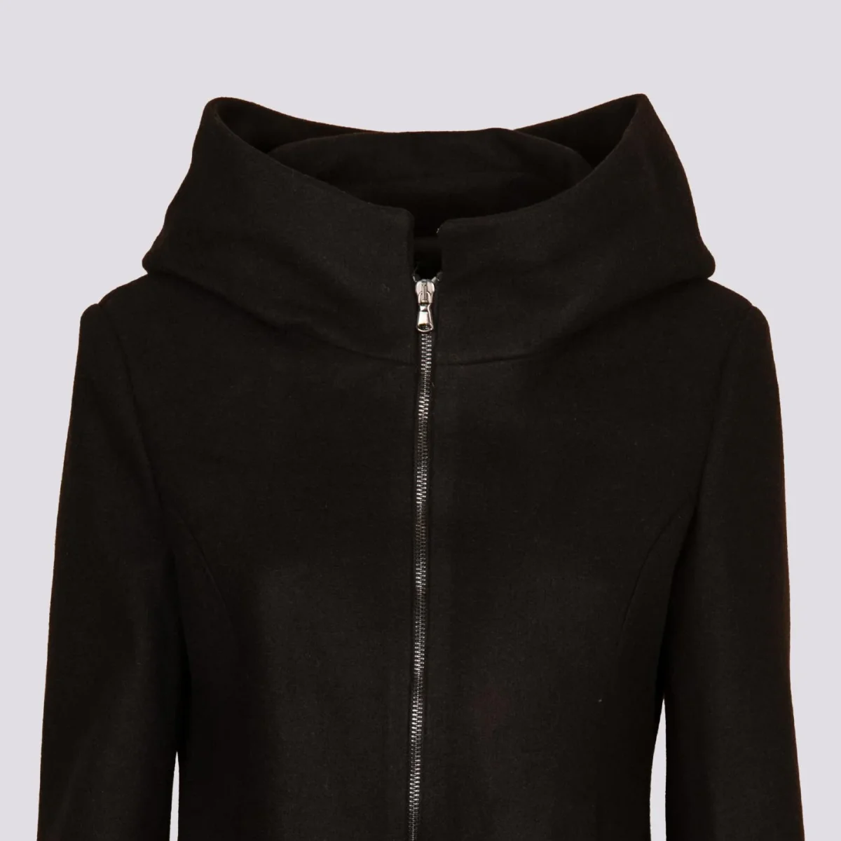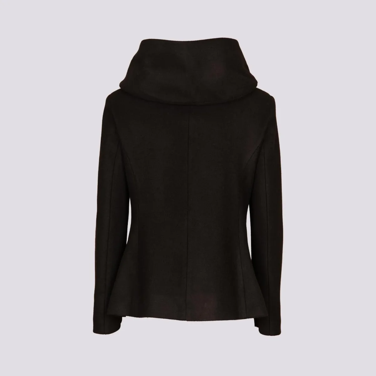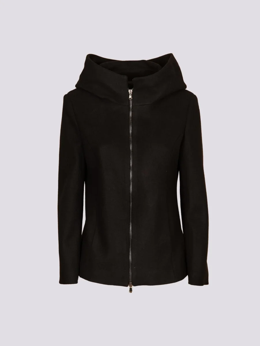 Giacca in panno color nero dal look sportivo con zip frontale, collo ampio, vestibilità regolare.