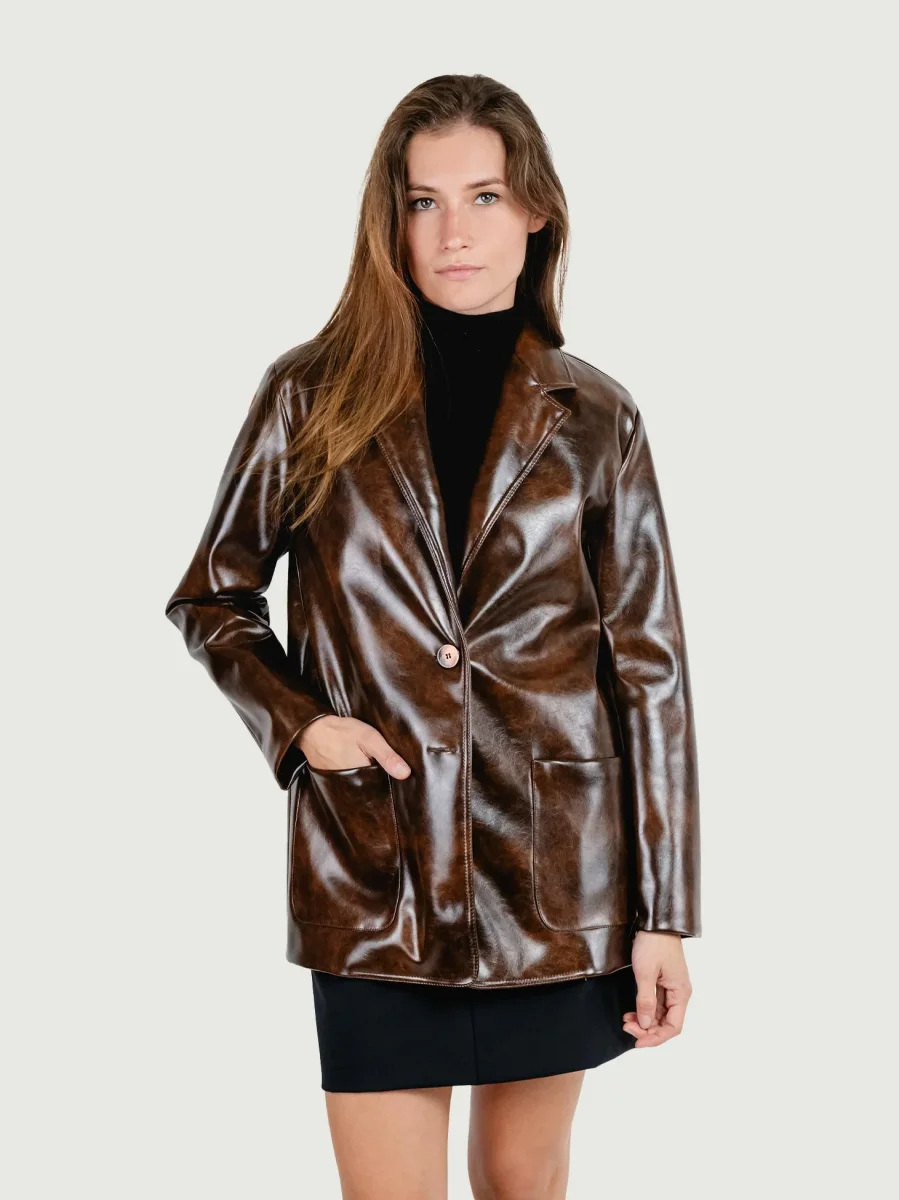 Giacca doppiopetto con bottoni in metallo effetto ottone.