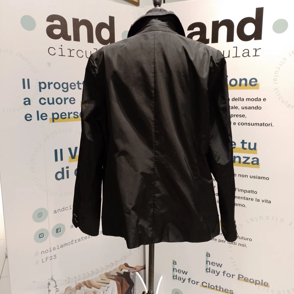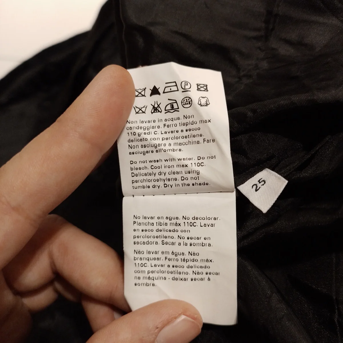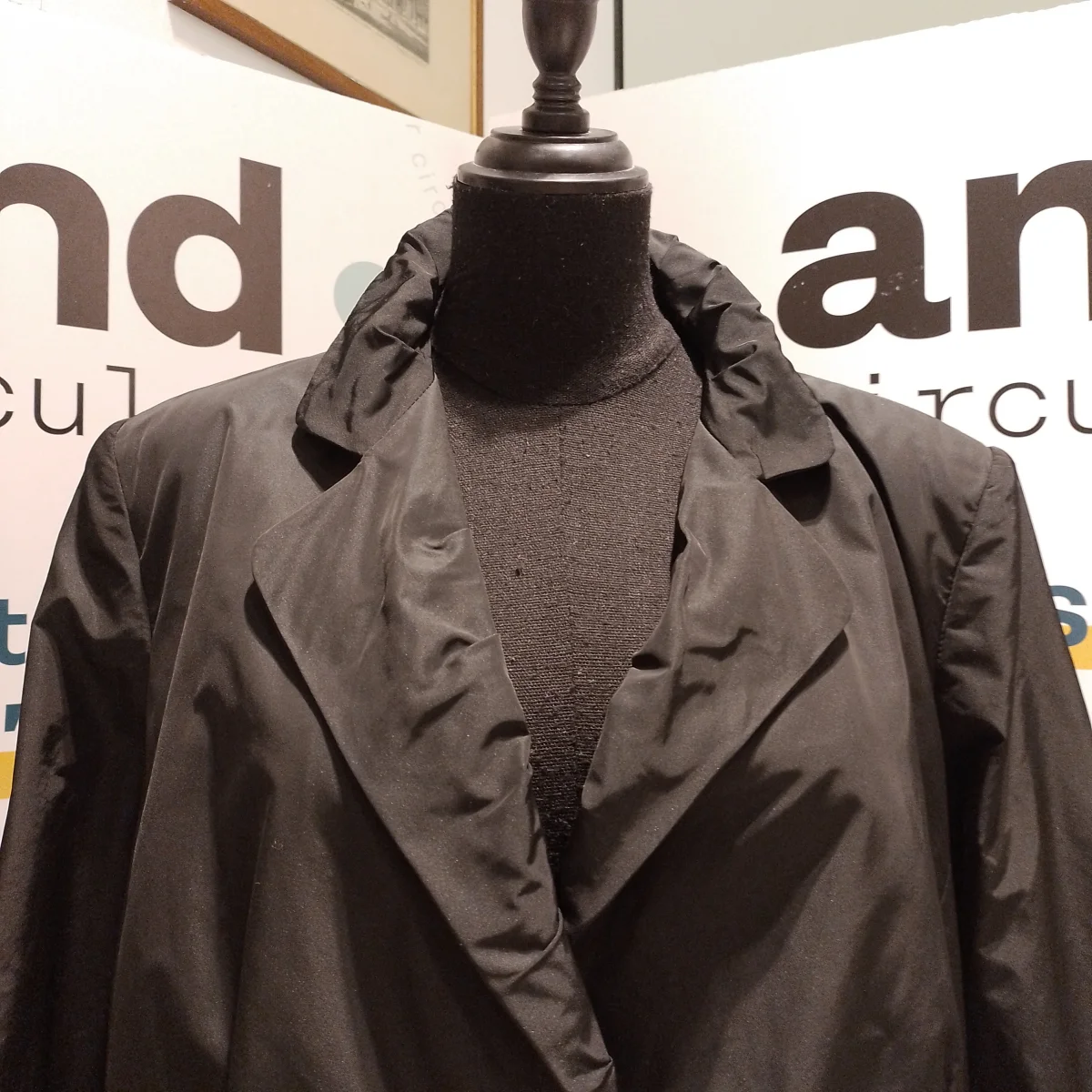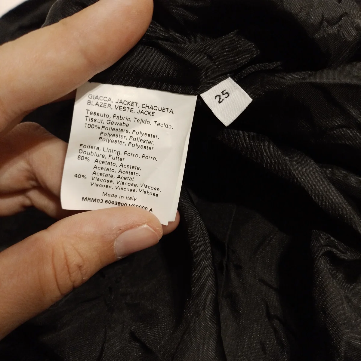 Giacca da donna Marca Marina Rinaldi. Tg. 25. Tessuto esterno 100% Poliestere mentre la Fodera è 60% Acetato 40% Viscosa. Colore nero. Il modello è classico , le spalle leggermente imbottite ed ha due bei bottoni frontali. Le due tasche a filetto sono complete di pattina. Ma la Stilista ha voluto dare un tocco particolare al rever, che pur essendo classico ha le punte arrotondate ed è montato con una serie di pieghe orizzontali, cucite in parte, per creare volume e soprattutto movimento al collo. Buone condizioni