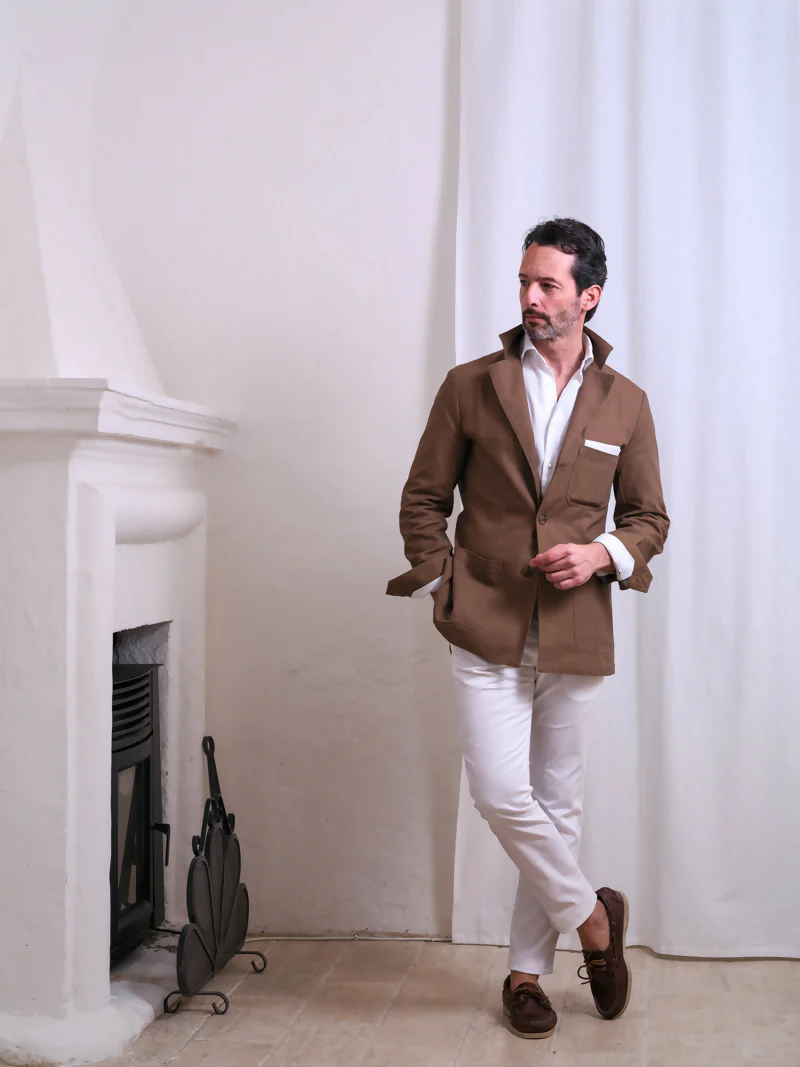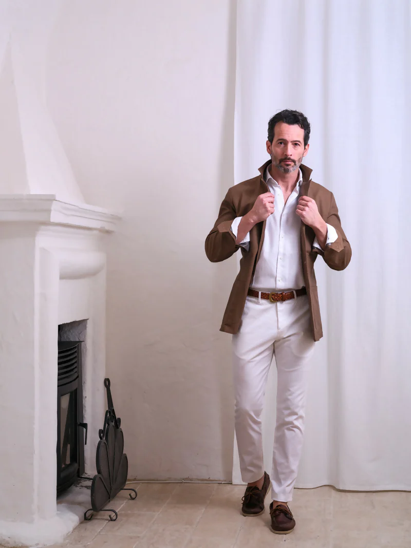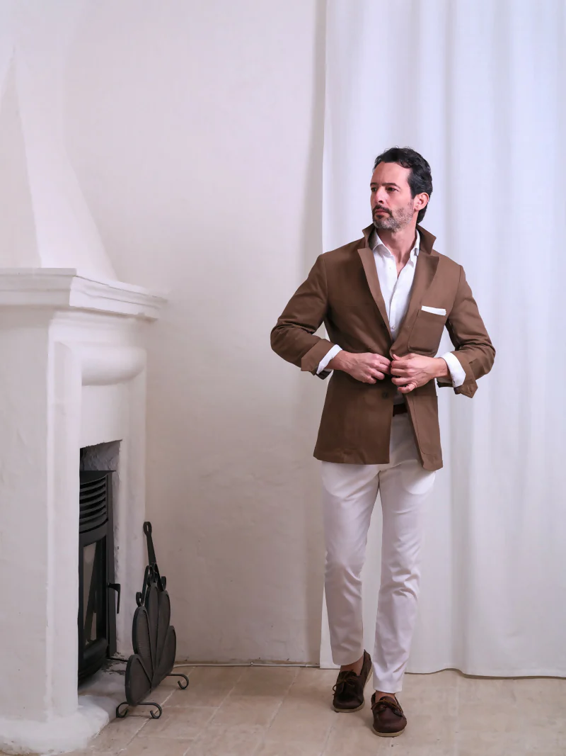 Capo versatile, formale-casual con camicia e pantaloni classici, da provare più informale su girocollo e denim; si consiglia un outfit monocromatico a contrasto col colore di Sahara.