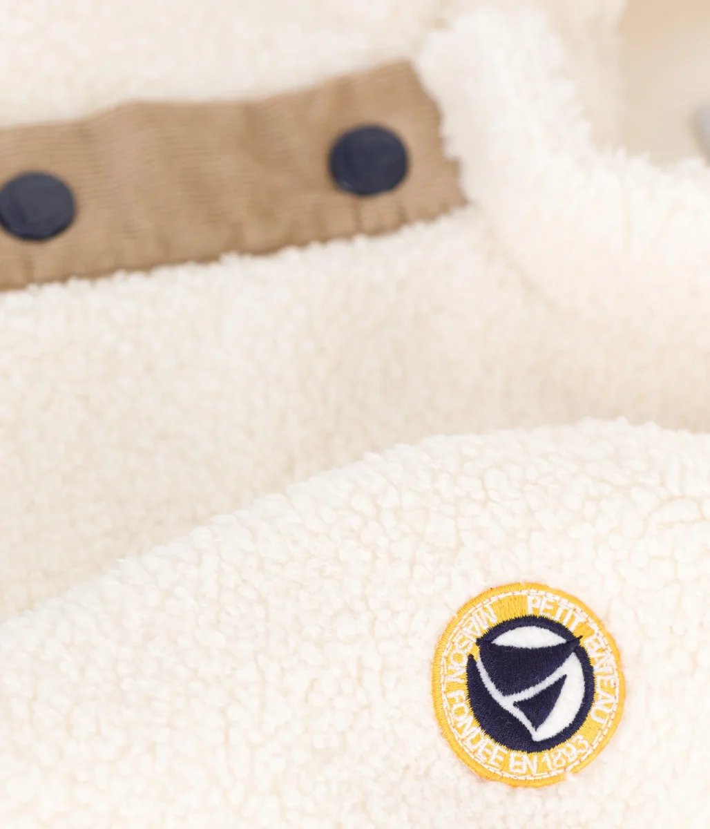 Giacca bambino imbottita in sherpa, un materiale morbido all’esterno con look increspato.