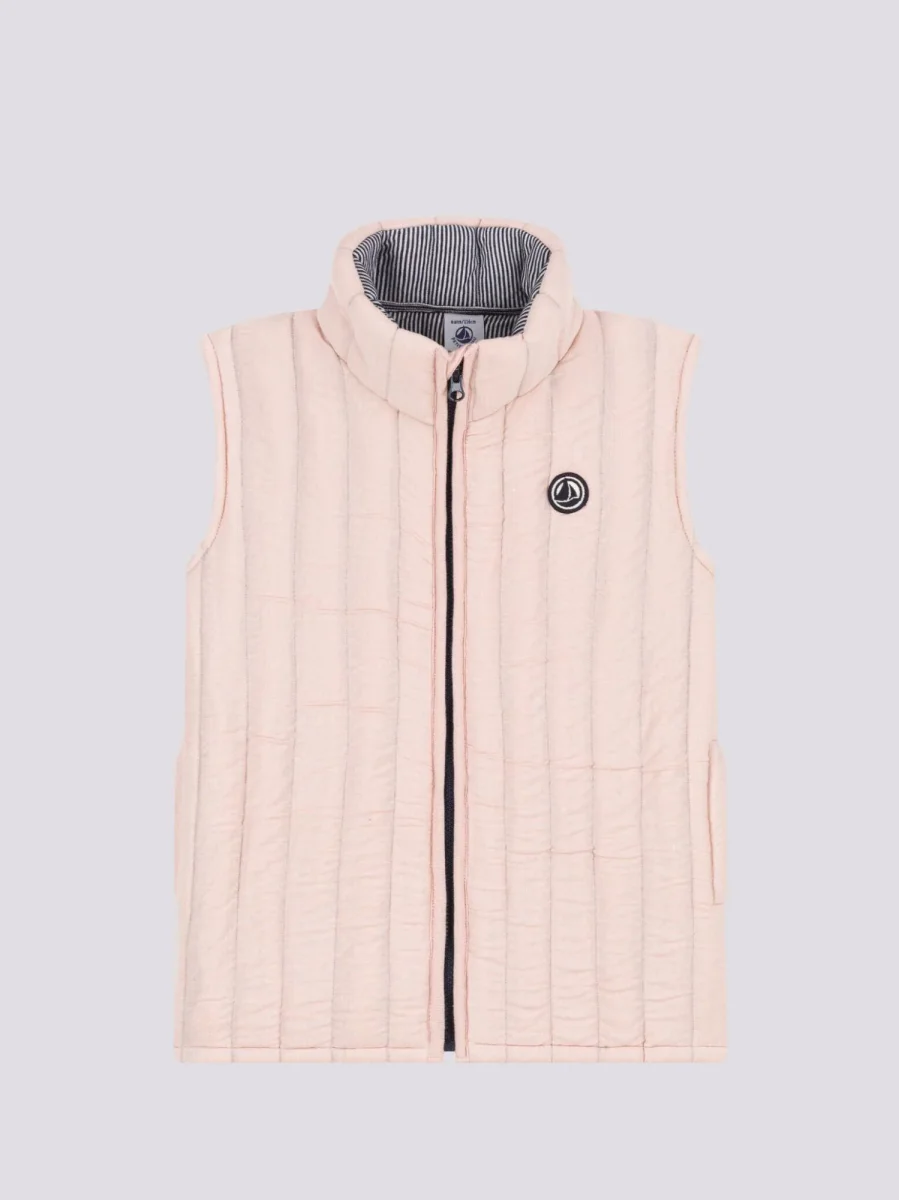 Giacca smanicata in tubique trapuntato, un materiale morbido e piacevole al tatto.