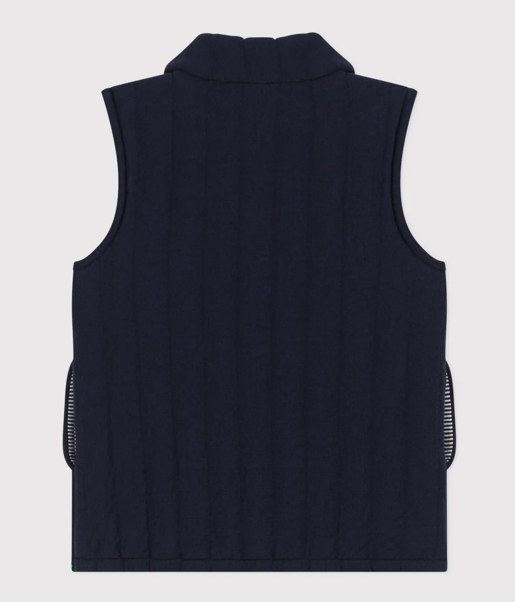 Giacca smanicata in tubique trapuntato, un materiale morbido e piacevole al tatto. Apertura con zip sul davanti.