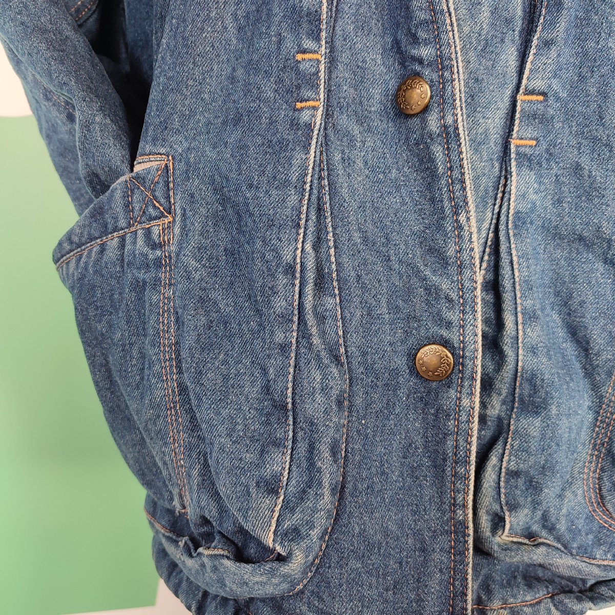 Giacca jeans vintage, Le chat made in Italy, tg S, chiusura frontale con cinque bottoni, due tasche laterali, interno in pelliccia.100% cotone. In buone condizioni