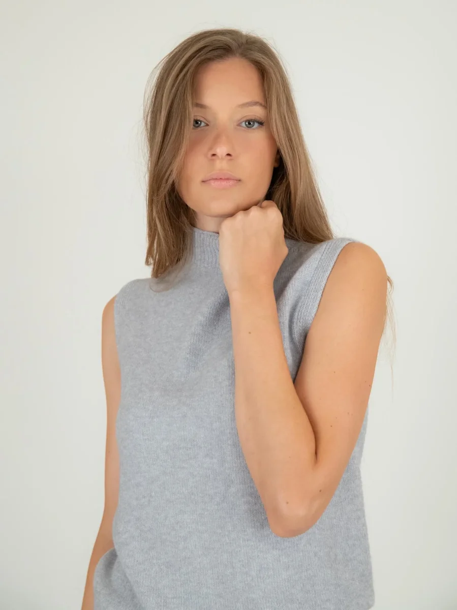 Gilet lupetto in maglia grigio perla.