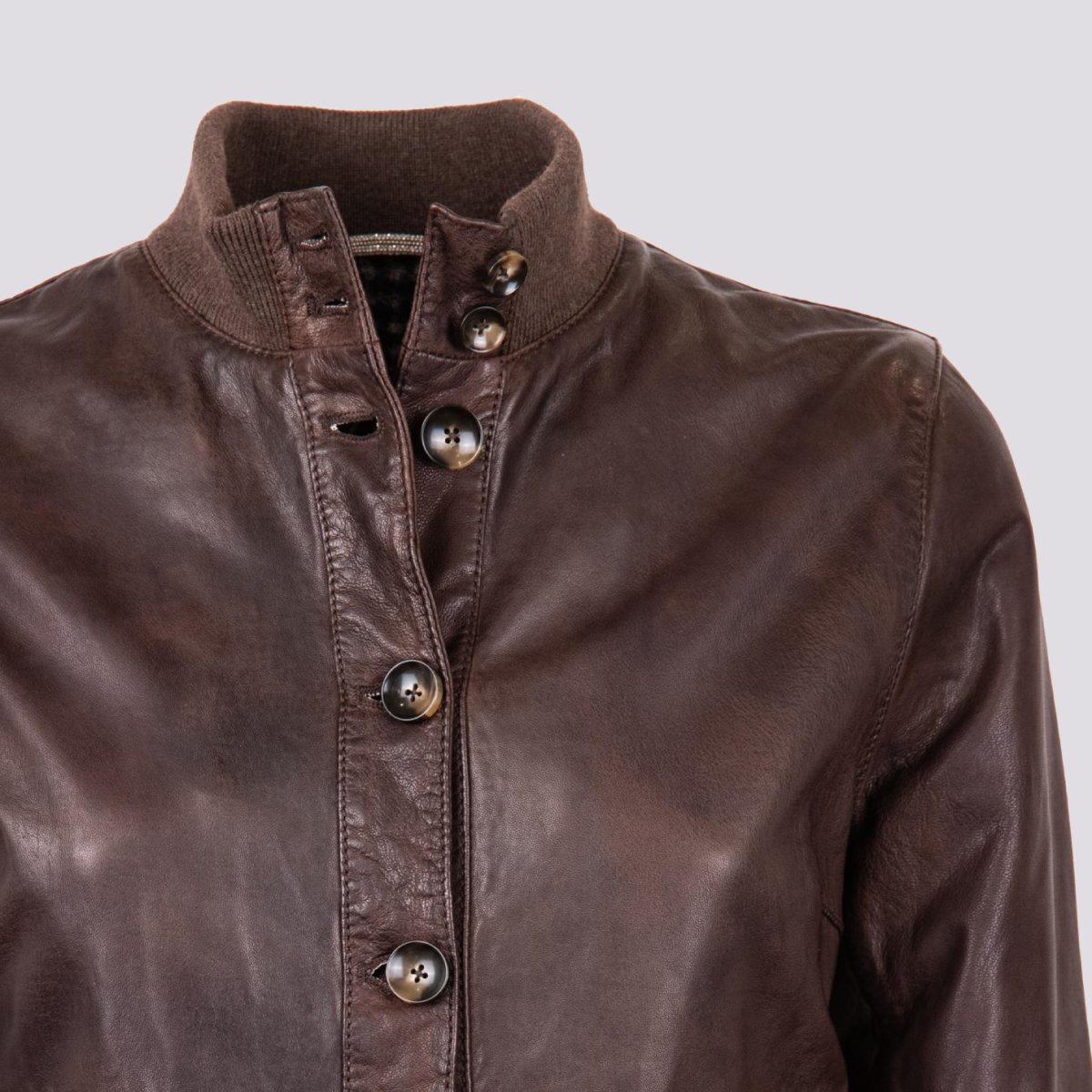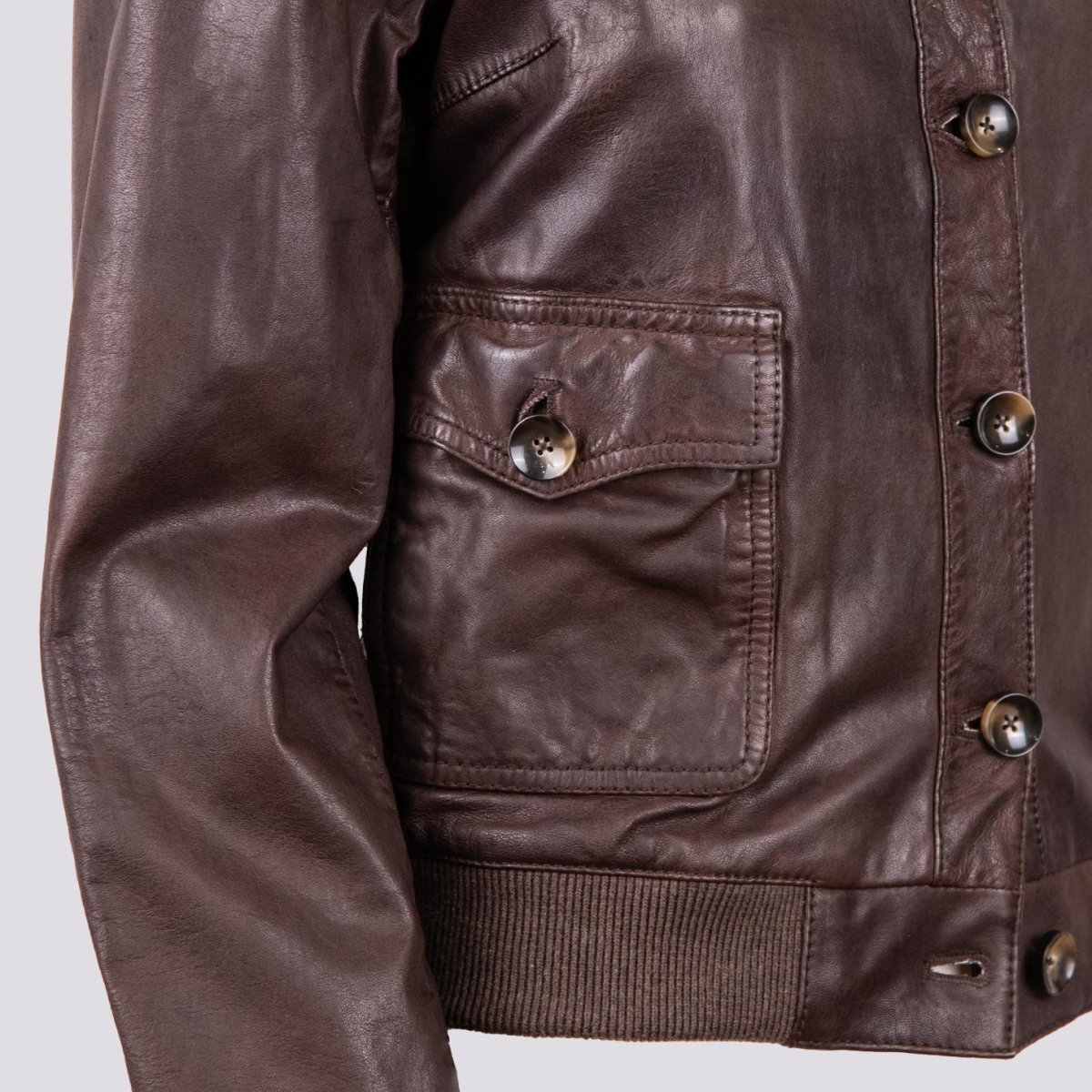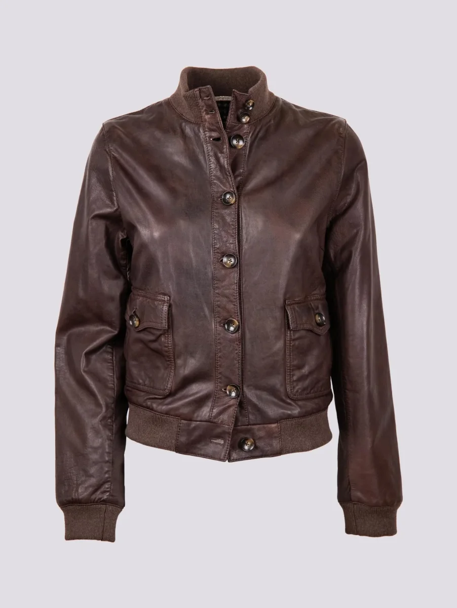 GIUBBOTTO CON CHIUSURA A BOTTONI IN PELLE MARRONE