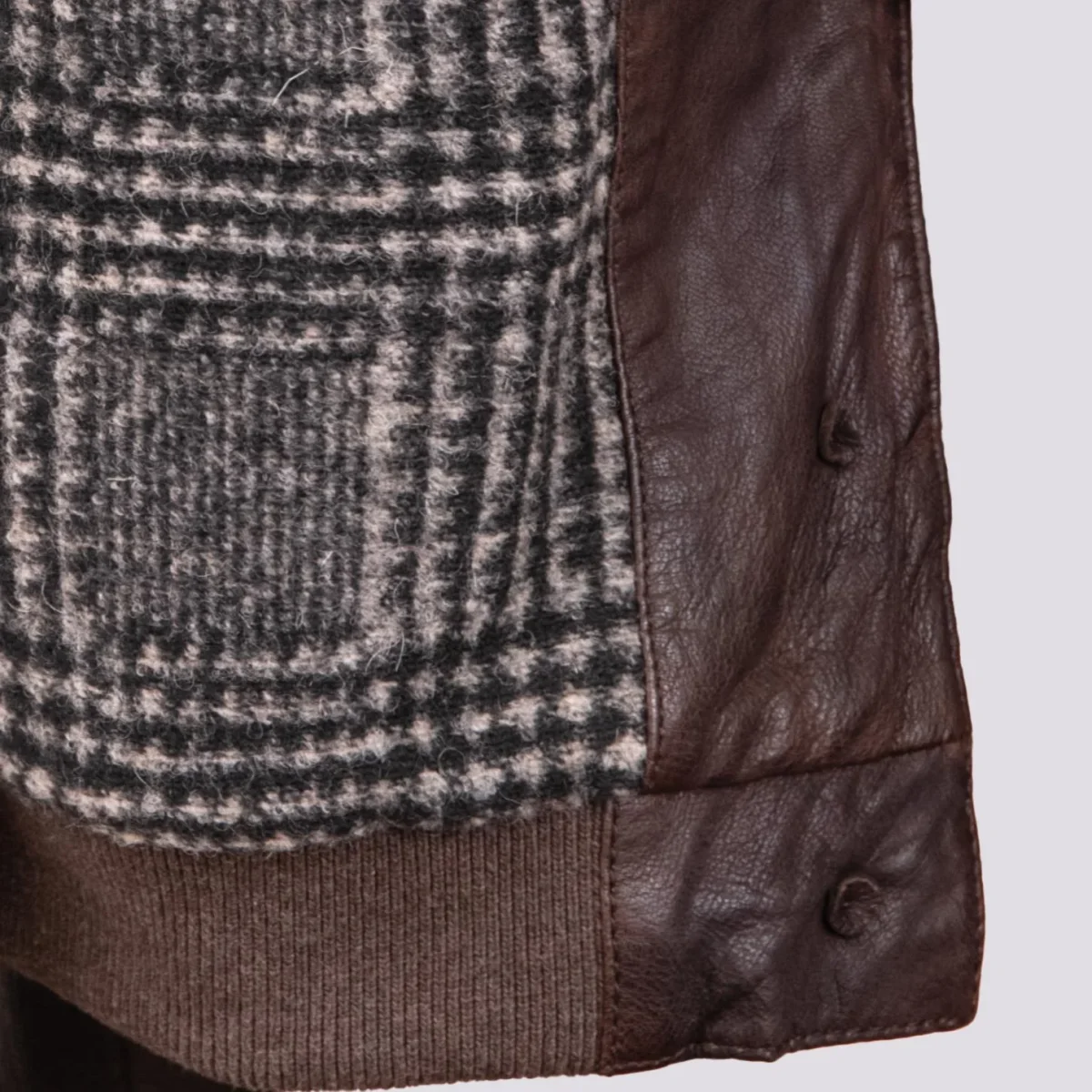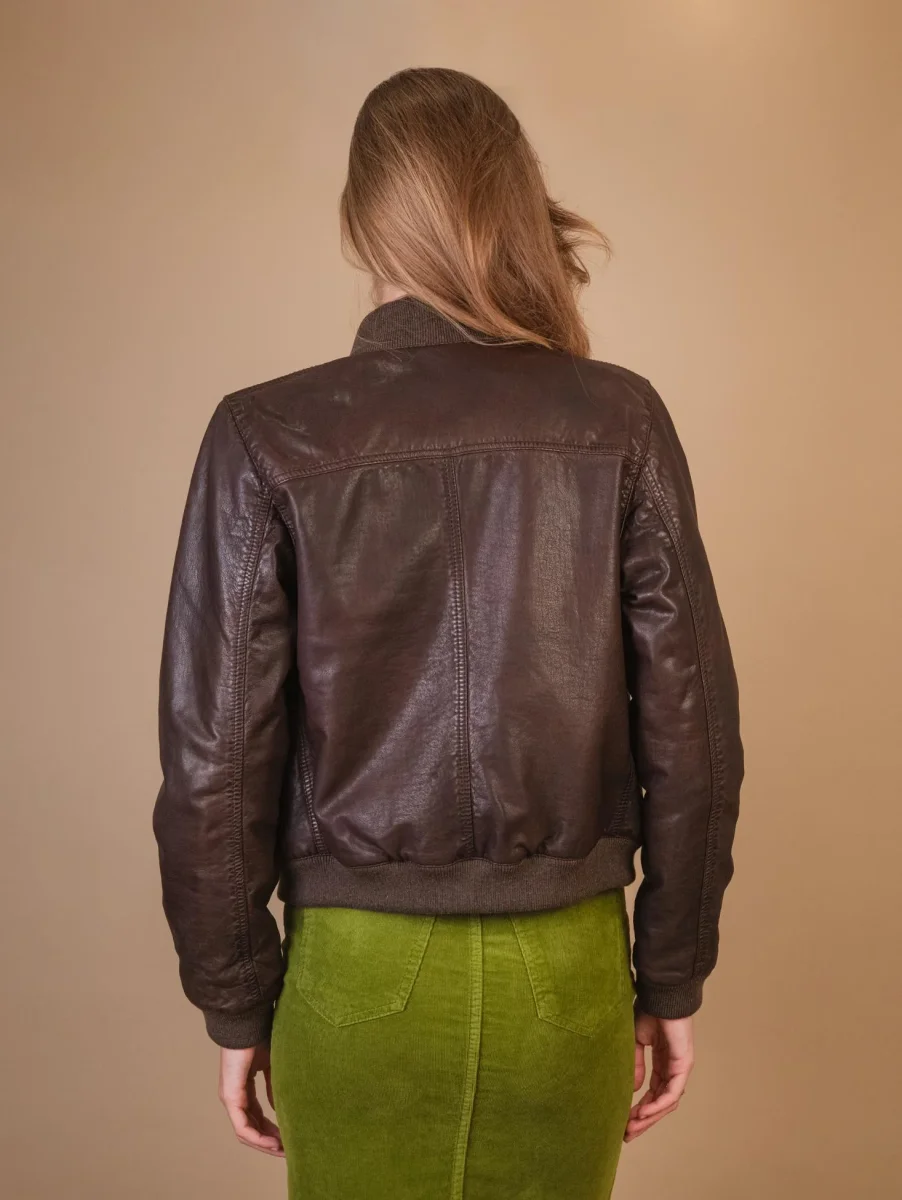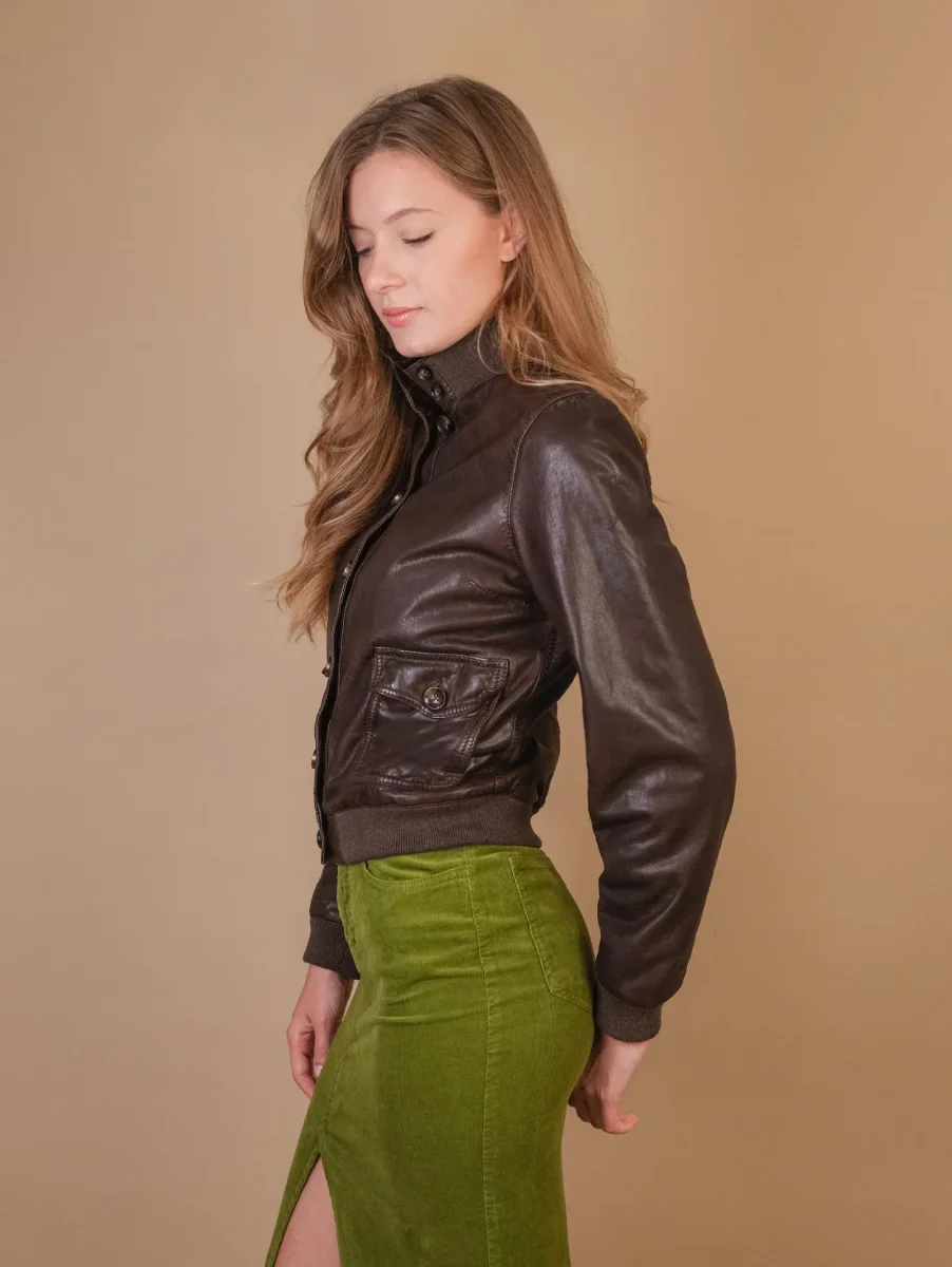 Giubbotto in pelle marrone con chiusura a bottoni “Mag”. Un modello iconico che continua a subire variazioni nel tempo ma che non passerà mai di moda. Interno foderato in misto lana fantasia tartan. Dettaglio chiusura con bottoni in madreperla marroni, tasche laterali e fondo in felpa elastica. Cuciture in rilievo in tonalità. Peso medio. Vestibilità regolare tendenzialmente slim. Composizione esterna: 100% vera pelle. Composizione interna: 59% poliestere, 18% lana,, 18% acrilico, 5% altre fibre. Lavare solo in centri specializzati.