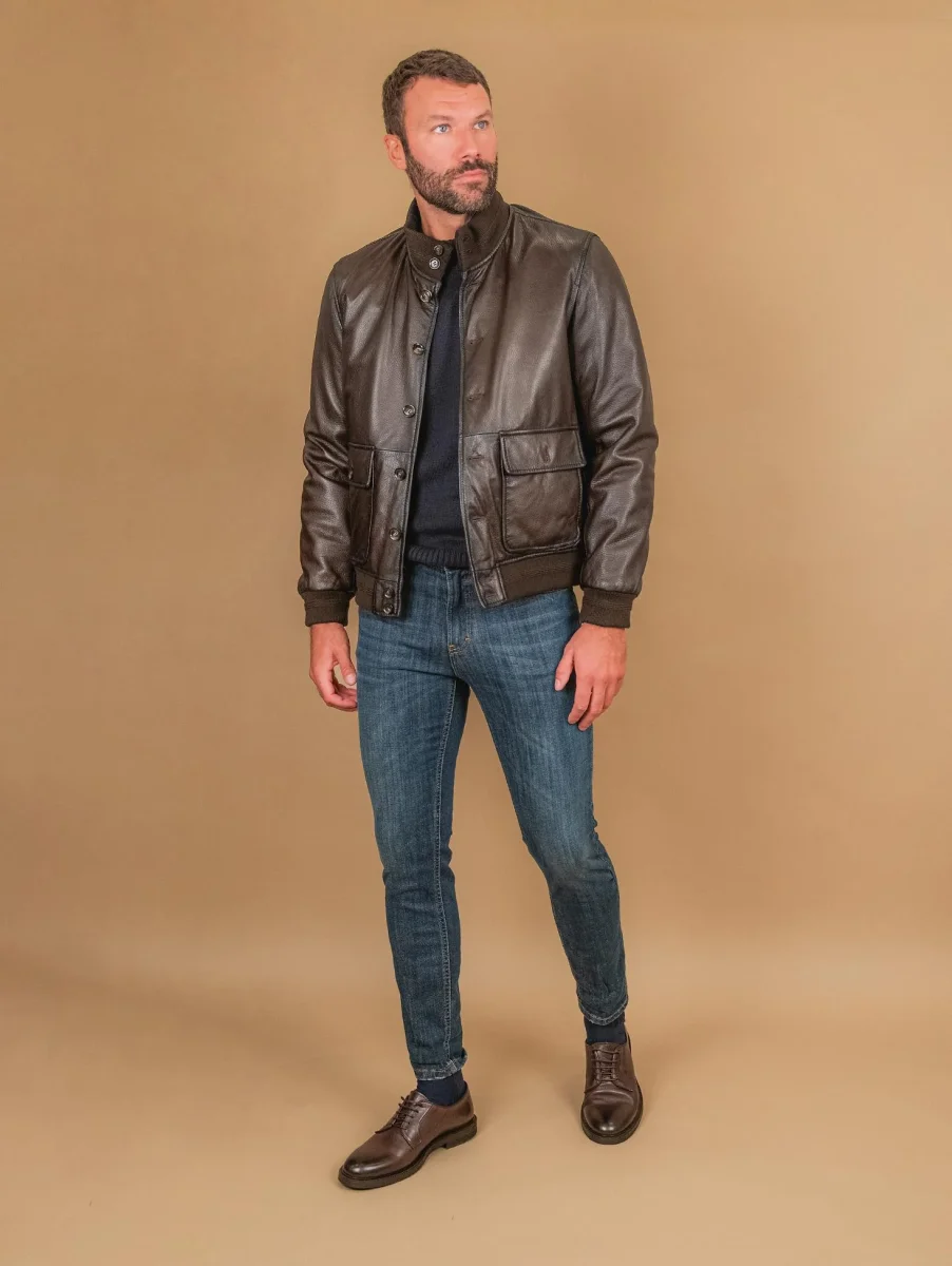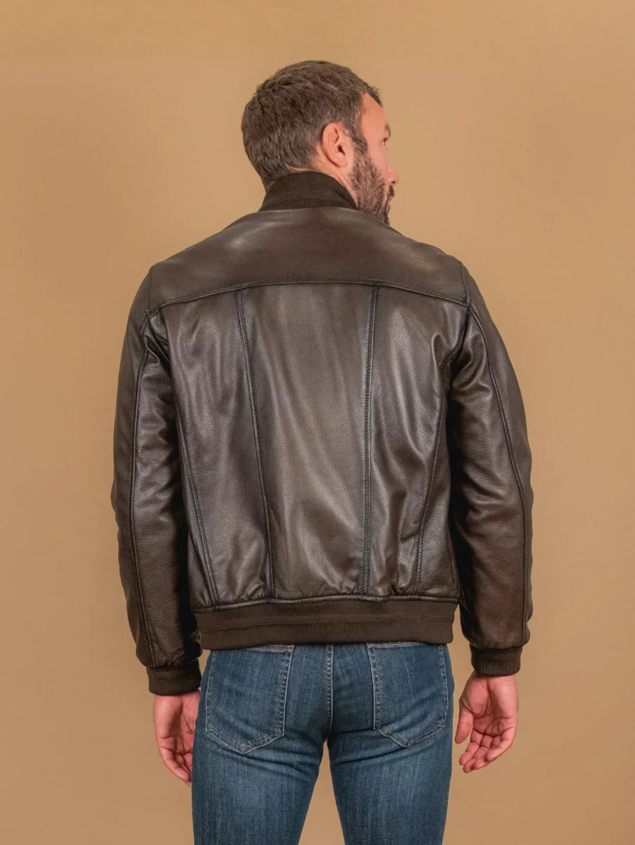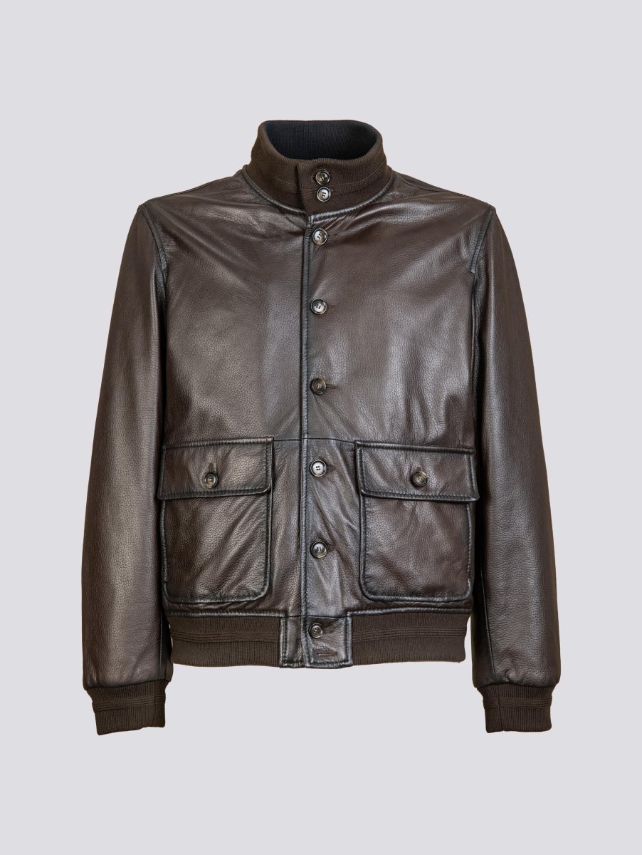 Giubbotto imbottito in pelle marrone reversibile. Chiusura a bottoni frontale. Dettaglio elastico su tutti i profili del capo. Doppia tasca applicata sulla parte frontale del capo, mentre sulla parte in nylon è sono a filo. Sacchetta in nylon in dotazione per contenere il capo e inserirlo all’interno della valigia. Pelle martellata deer print. Questo capo fa parte della collezione Sub Zero, pensata appositamente per riparare il corpo dal caldo anche quando la temperatura si abbassa sotto lo zero. Imbottitura interna in eco piuma. Peso abbondante. Vestibilità tendenzialmente slim. Il modello è alto 1.83 e indossa una 52. Composizione esterna: 100% vera pelle. Composizione interna: 100% nylon.