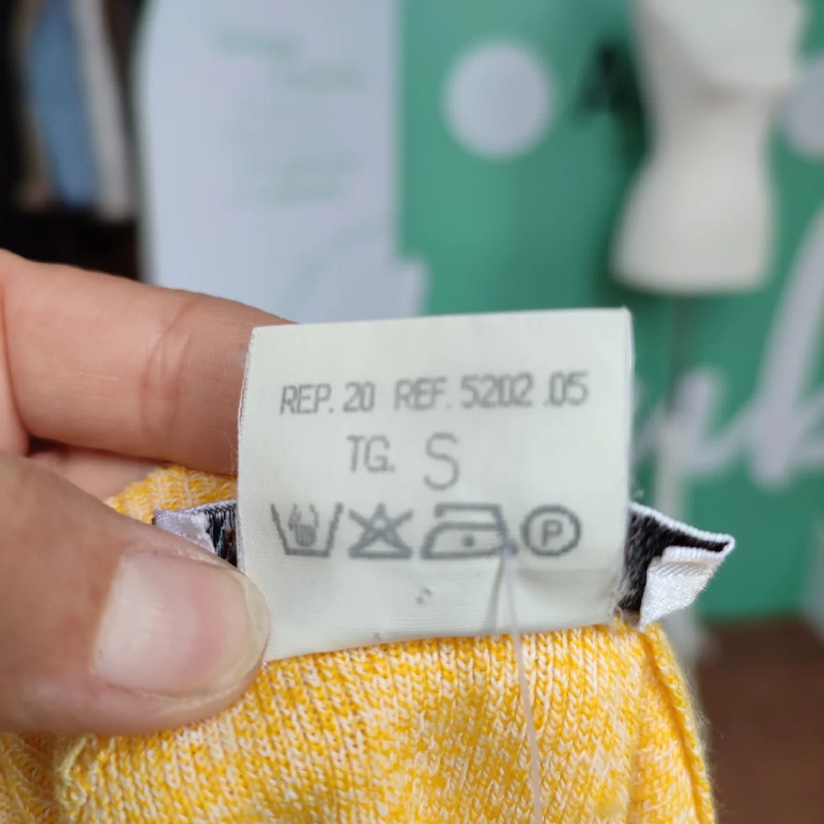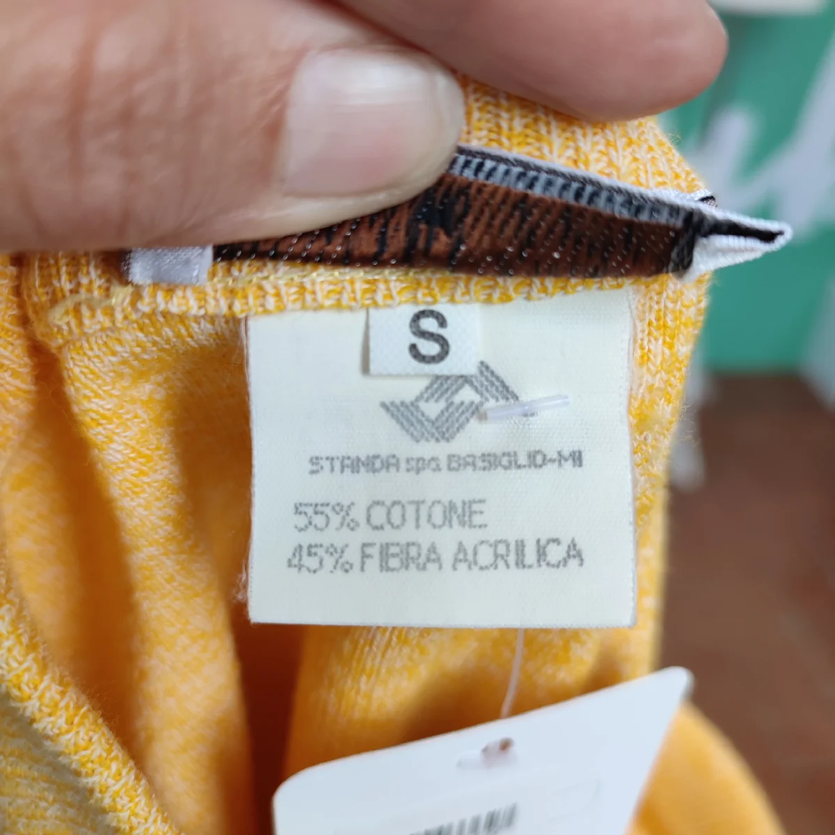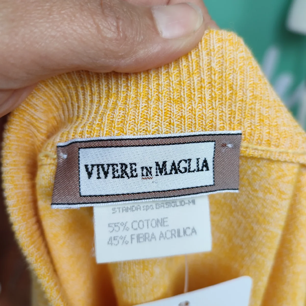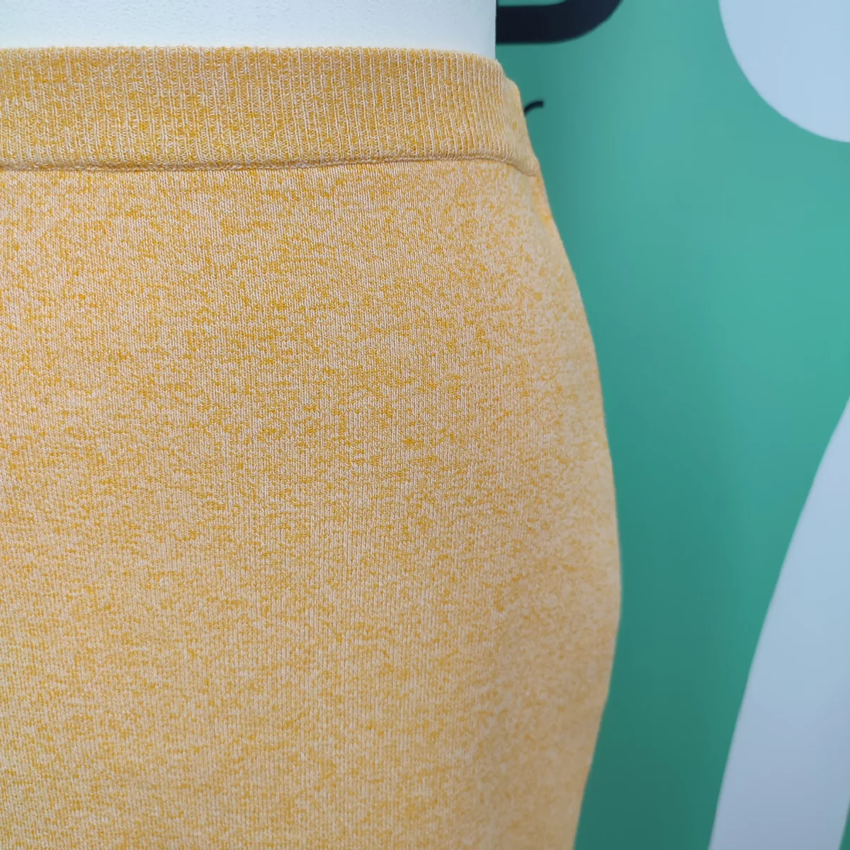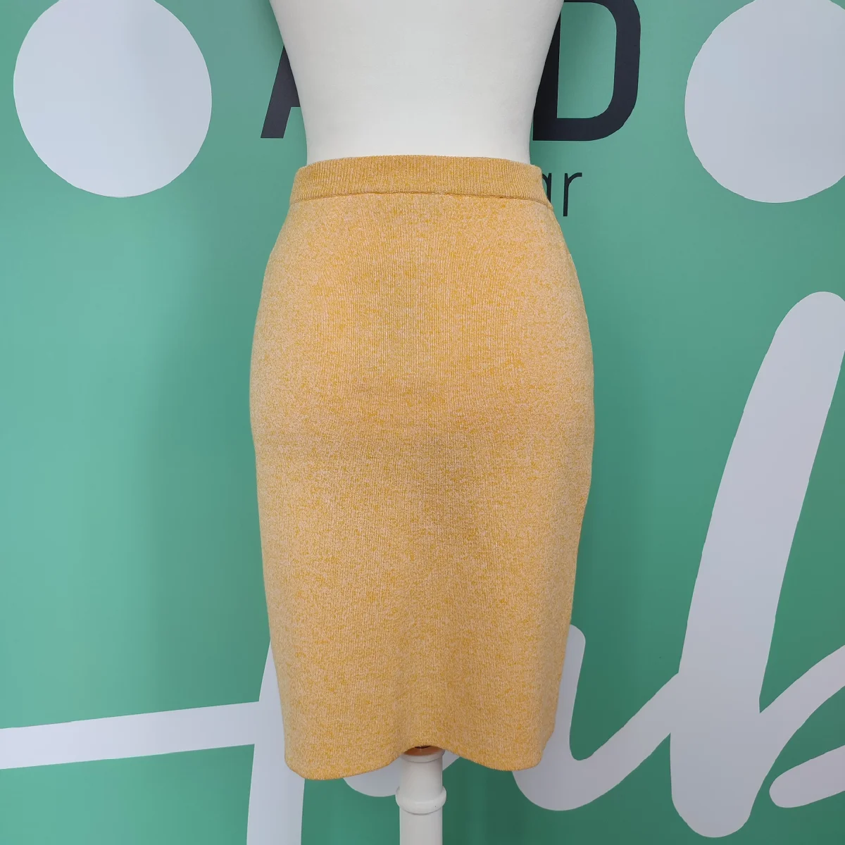 Gonna midi Vintage di VIVERE in MAGLIA , taglia S , color giallo. Presenta elastico alla vita, gonna morbida , composizione del materiale: 55% cotone, 45% fibra acrilica. Condizioni buone.