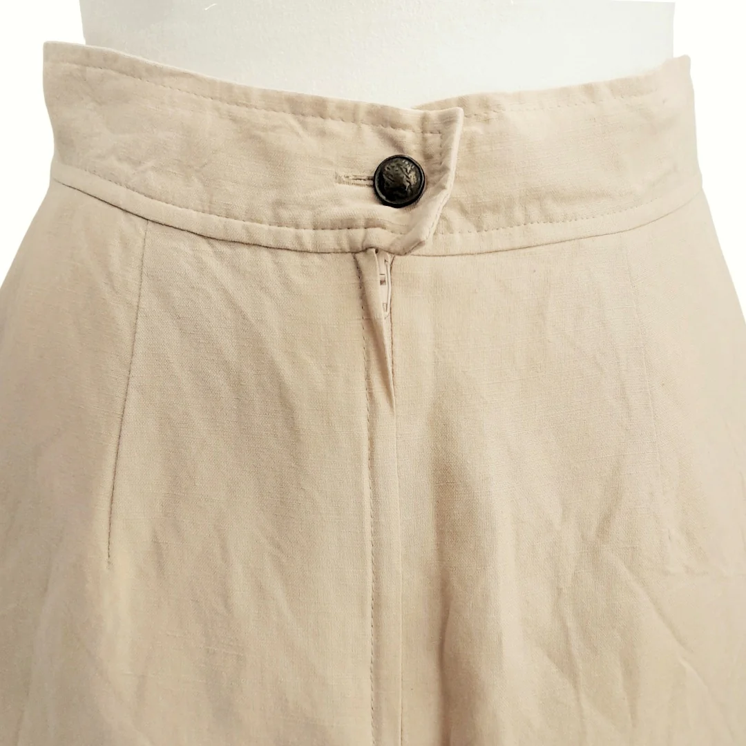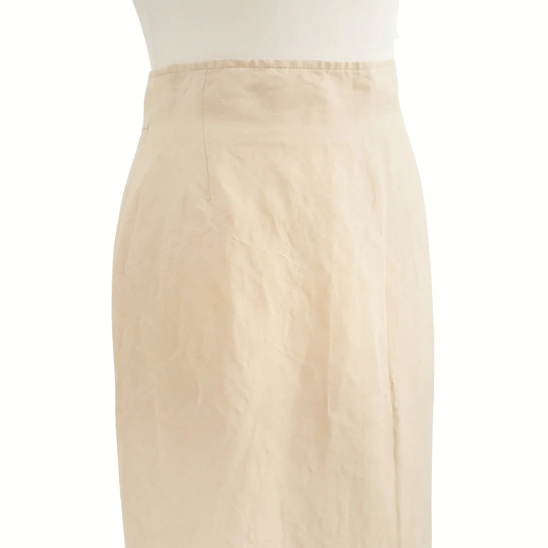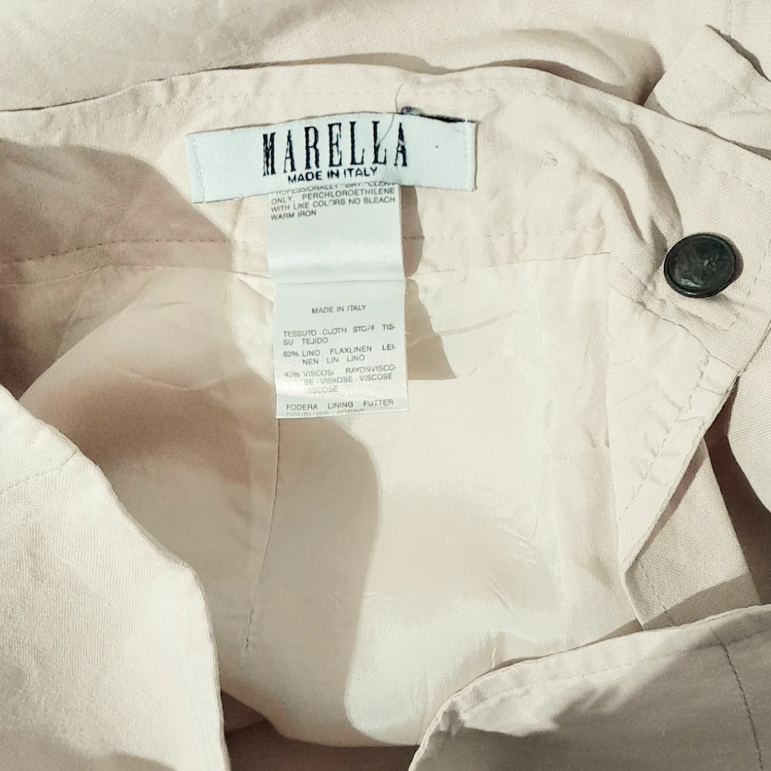 Gonna Marella, fabbricata in Italia. Taglia 42, 60% lino 40% viscosa, colore crema, chiusura posteriore con zip e bottone, foderata, il lino è leggermente usurato. In buone condizioni