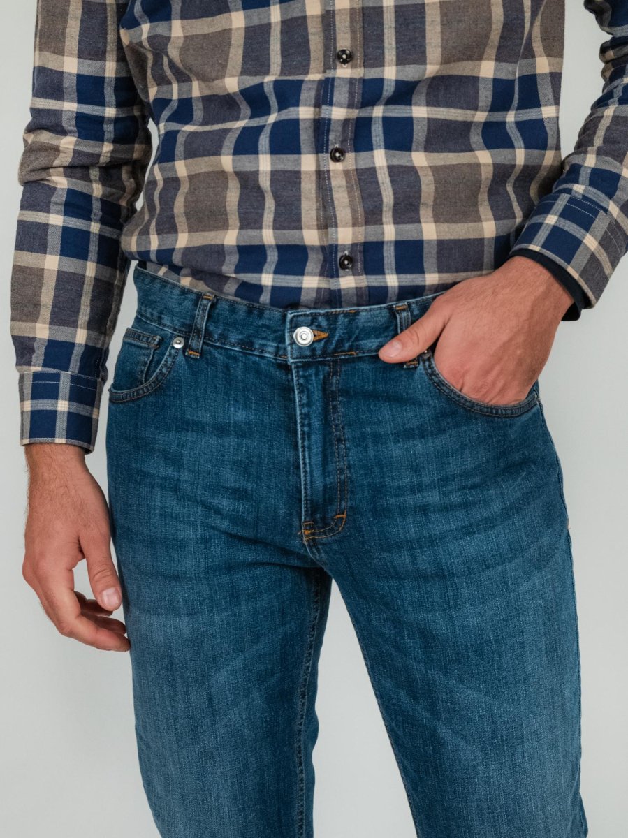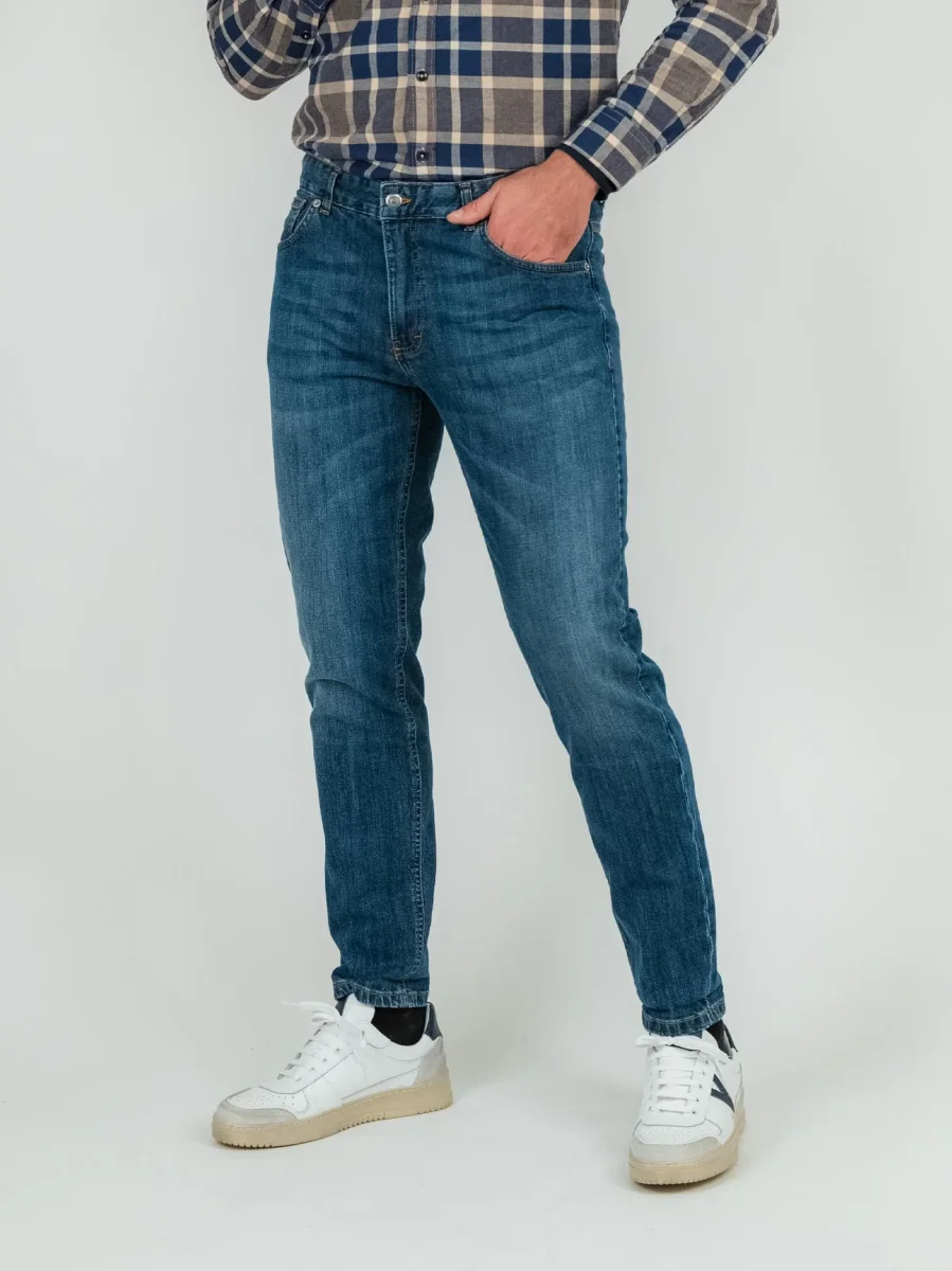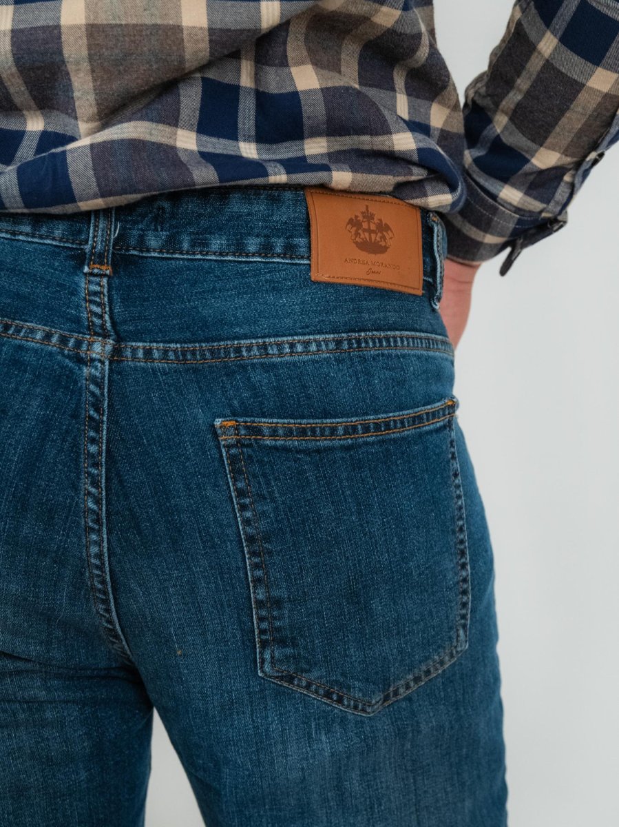 Jeans 5 tasche lavaggio scuro.