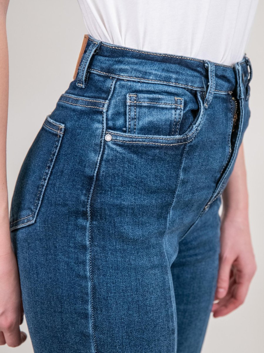 Dettaglio cucitura in rilievo verticale su entrambe le gambe.