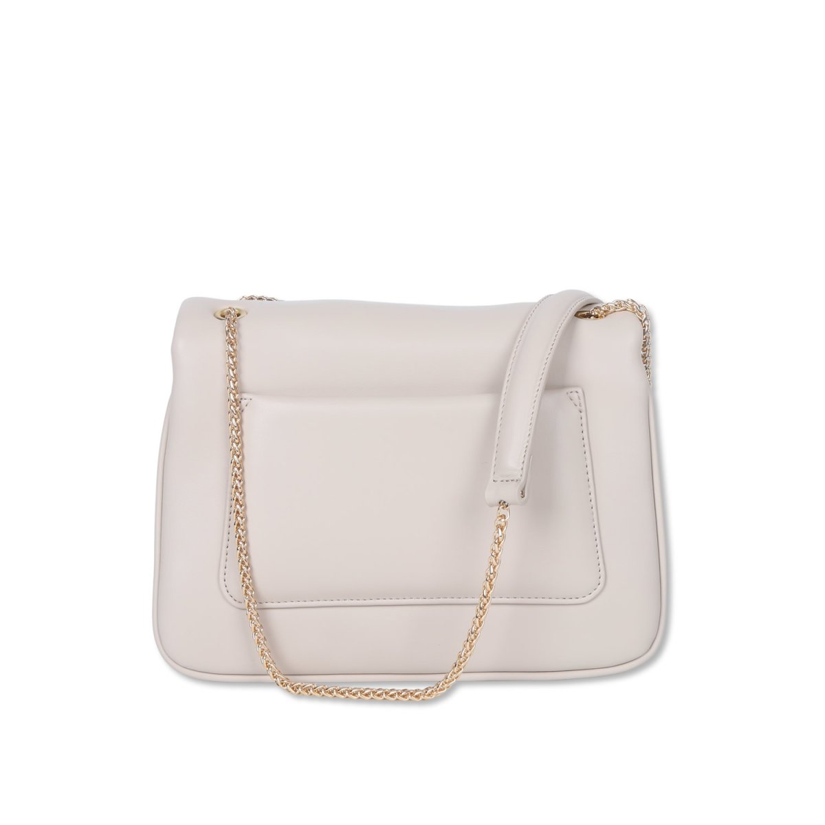 Realizzata in materiale effetto pelle di alta qualità, presenta il distintivo logo metallico frontale e una tracolla con catena, che aggiunge un tocco luminoso e contemporaneo. L’interno è foderato e dotato di pratiche tasche per mantenere tutto in ordine.