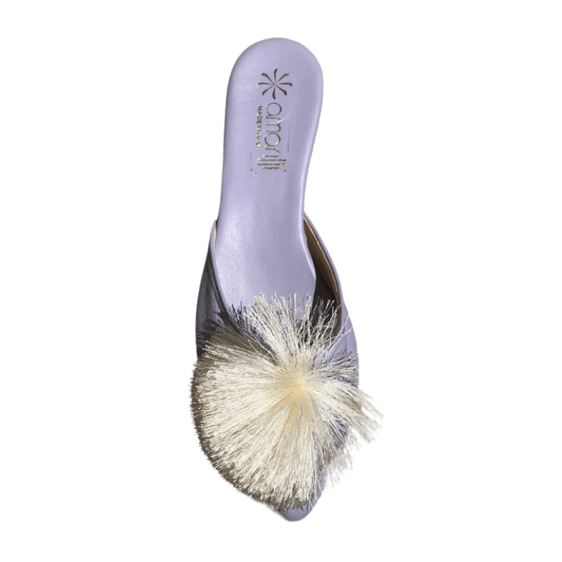 Realizzati con tomaia in pelle glicine con pon pon panna colorata in tre varianti moda, i sabot Luna hanno uno stile raffinato ed elegante.