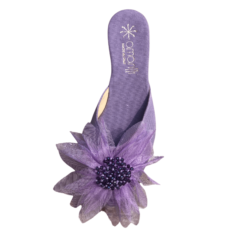 Realizzati con tomaia in cotone con fiore in organza e perline, i sabot Luna garantiscono uno stile raffinato ed elegante.