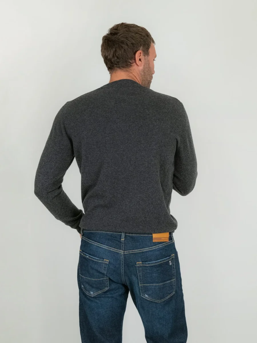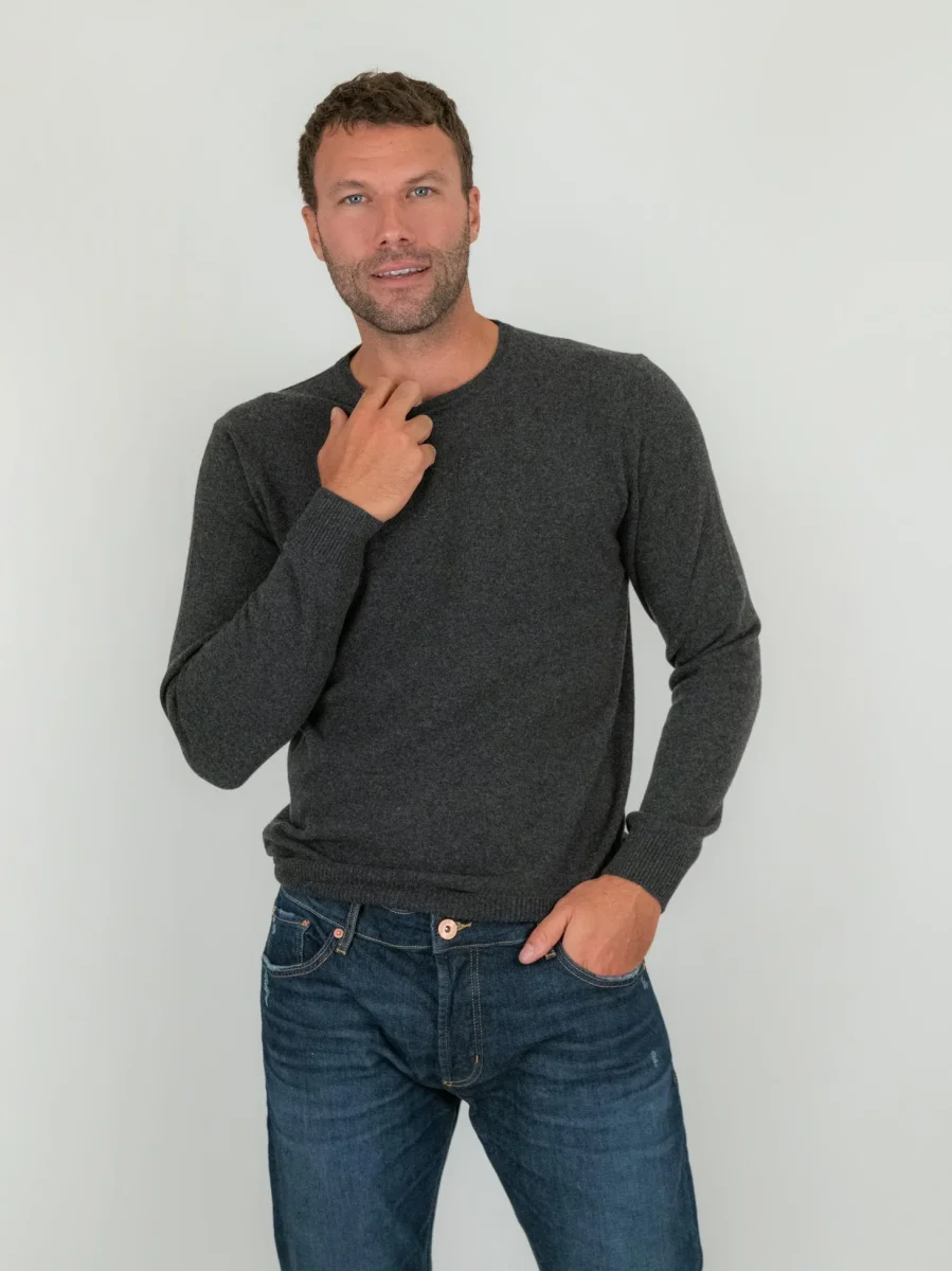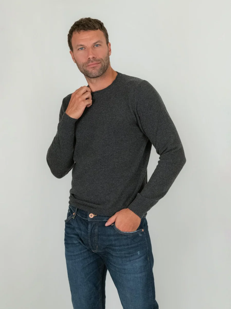 Maglia girocollo in lana merino rasata color grigio.