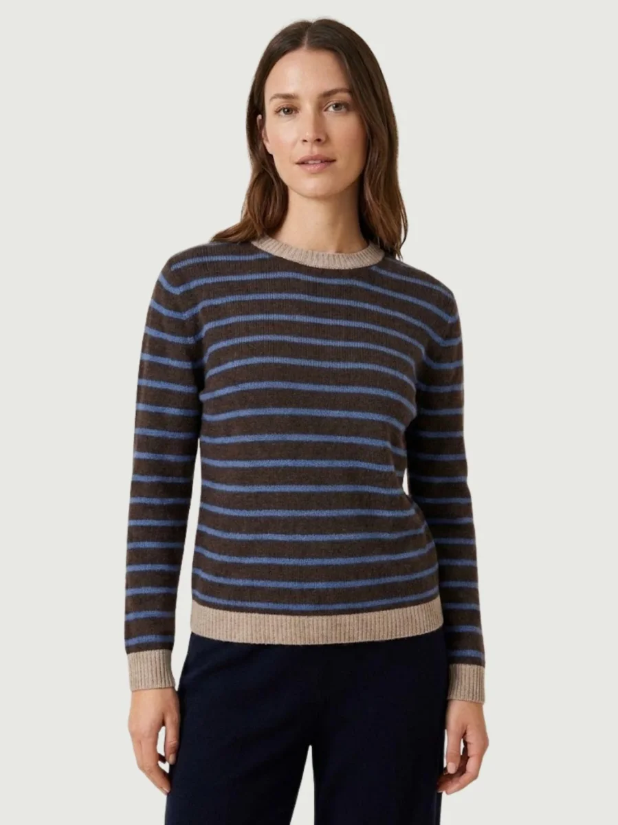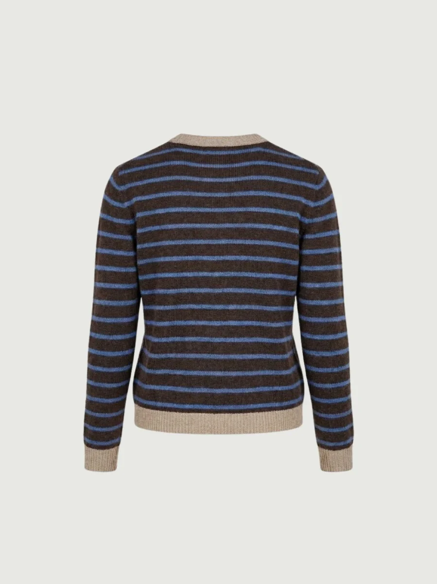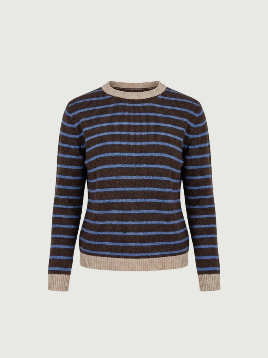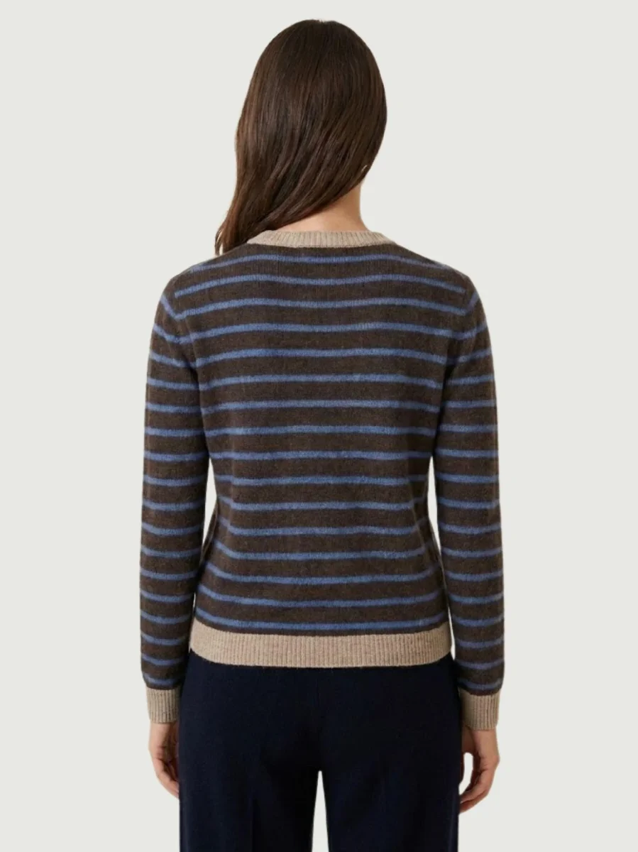 Maglia girocollo con fondo moro e righe carta zucchero