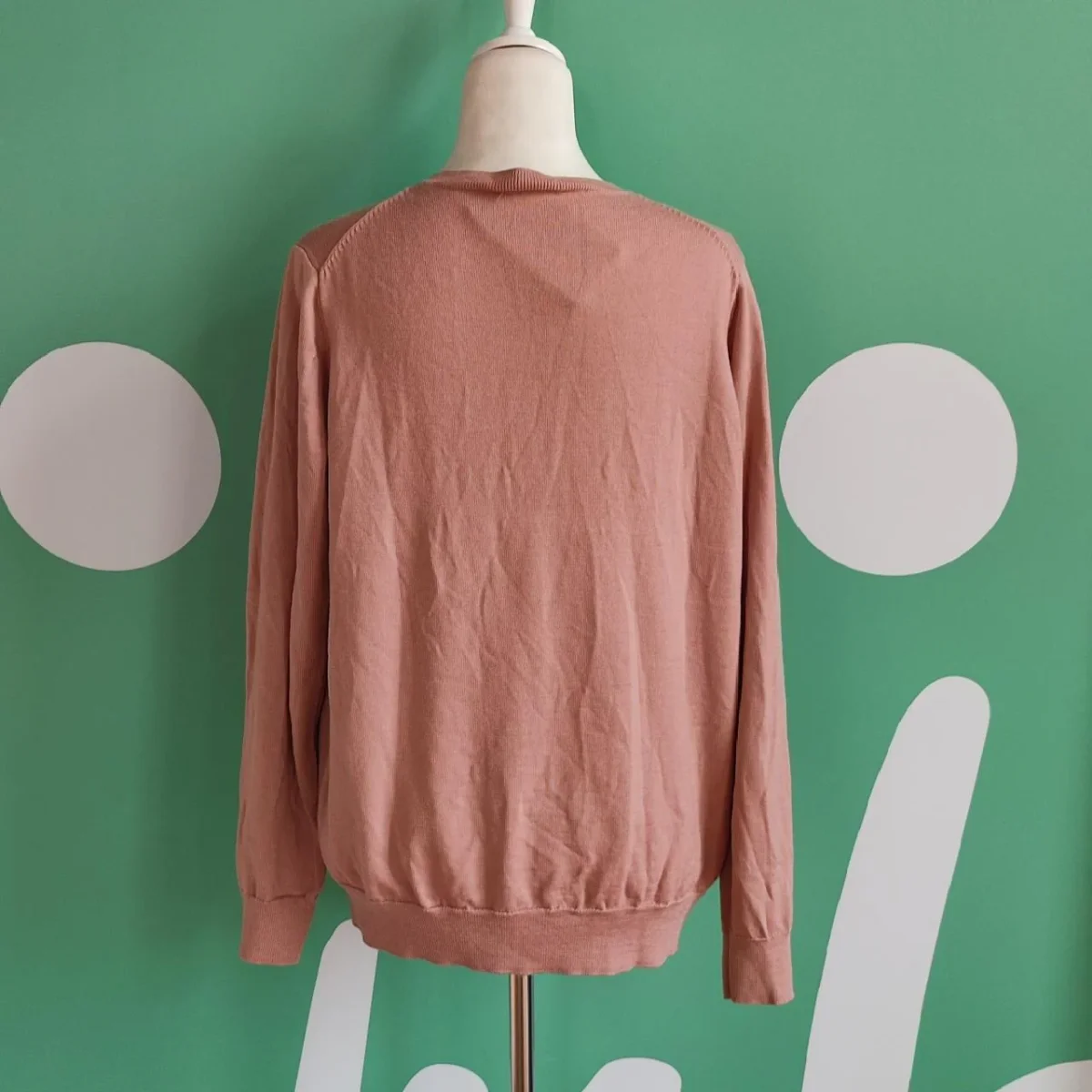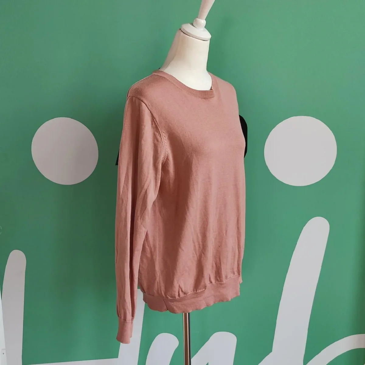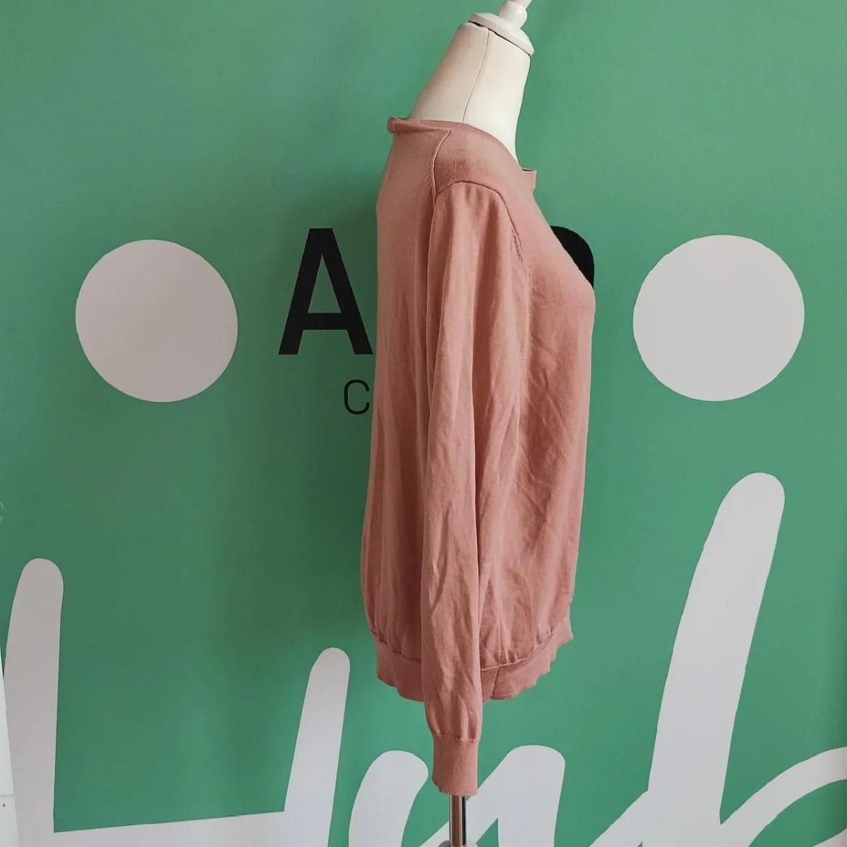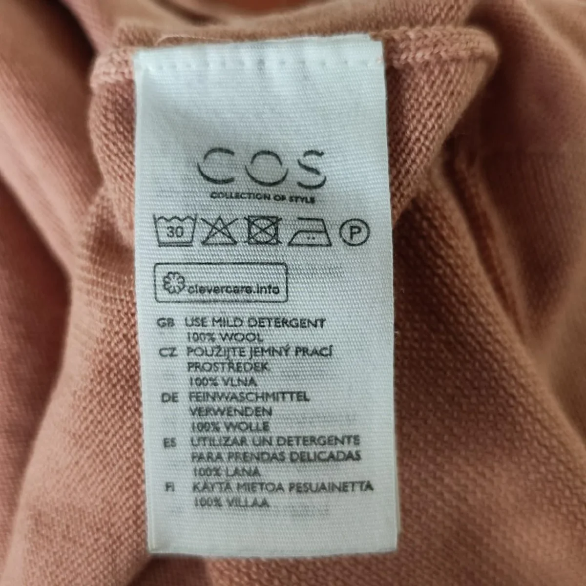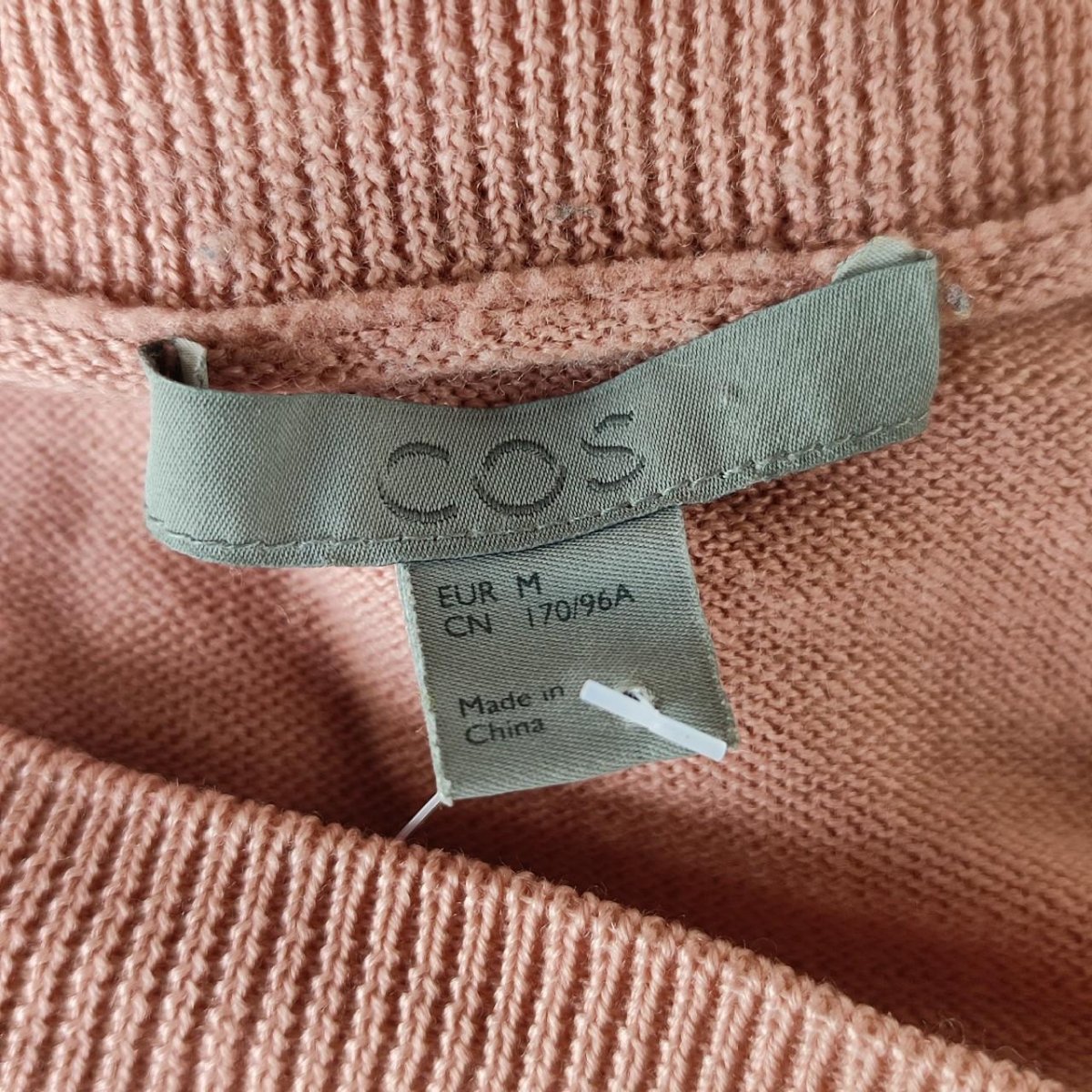 Maglioncino da donna. Marca Cos. Colore Rosa Antico Chiaro. Tg. M. 100% Lana. Lo scollo rotondo a cannetta fine, così come il fondo ed i polsini. Il giro manica è calato e quindi estremamente curato. Il corpo del capo è a punto rasato. La qualità del materiale utilizzato lo rende molto setoso sia al tatto che alla vista. Una minuscola macchiolina sul fronte che non ne pregiudica la bellezza. Buone condizioni.