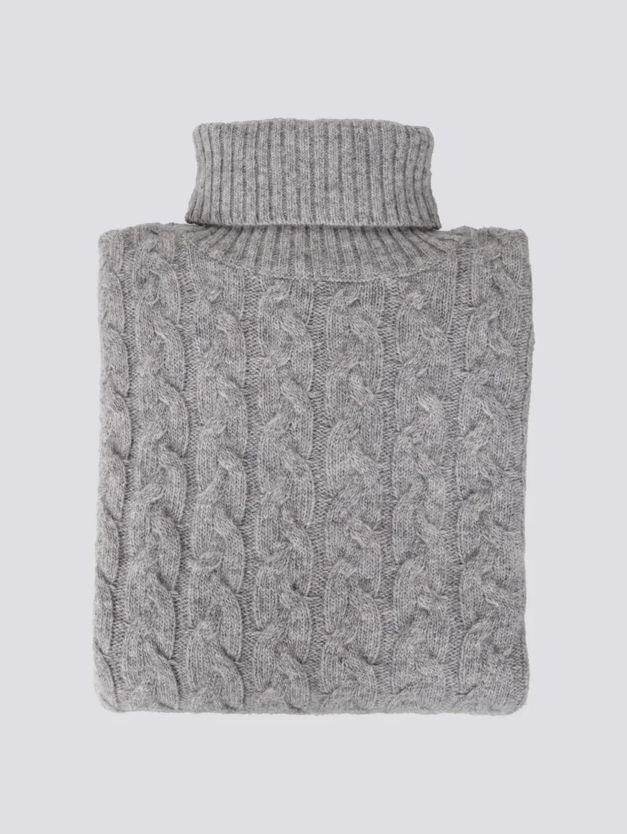 Maglione a collo alto con intreccio in lana grigia