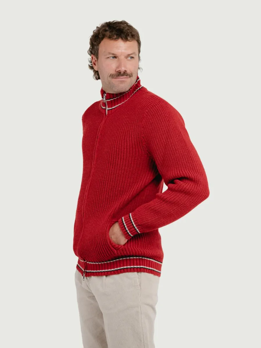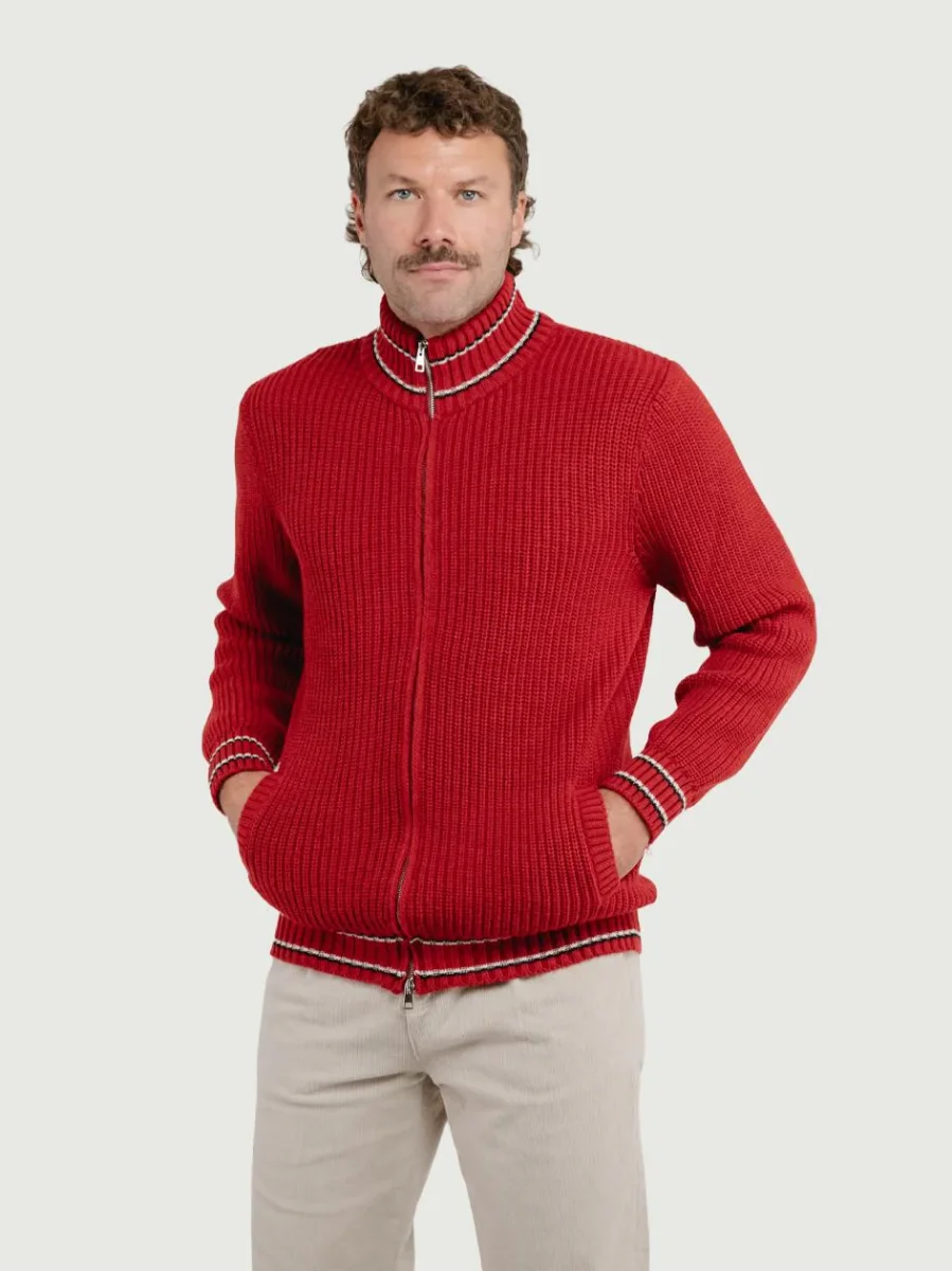 Coste su collo, fondo, polsini e profilo delle tasche.