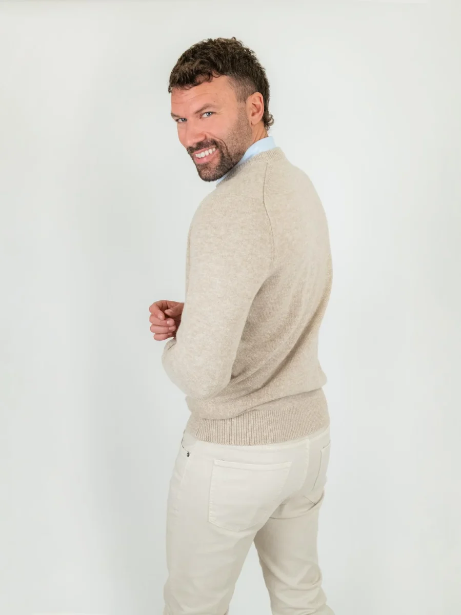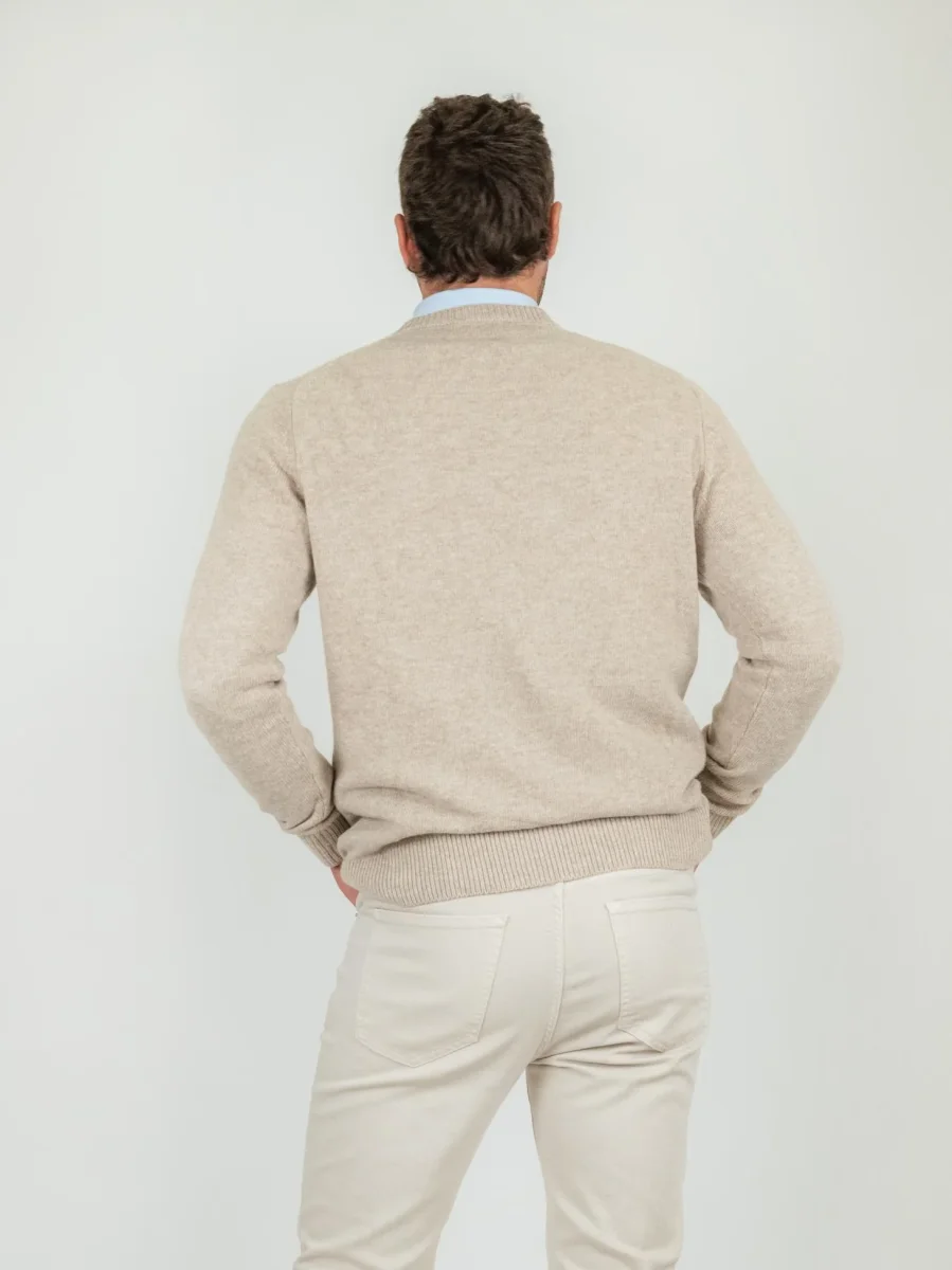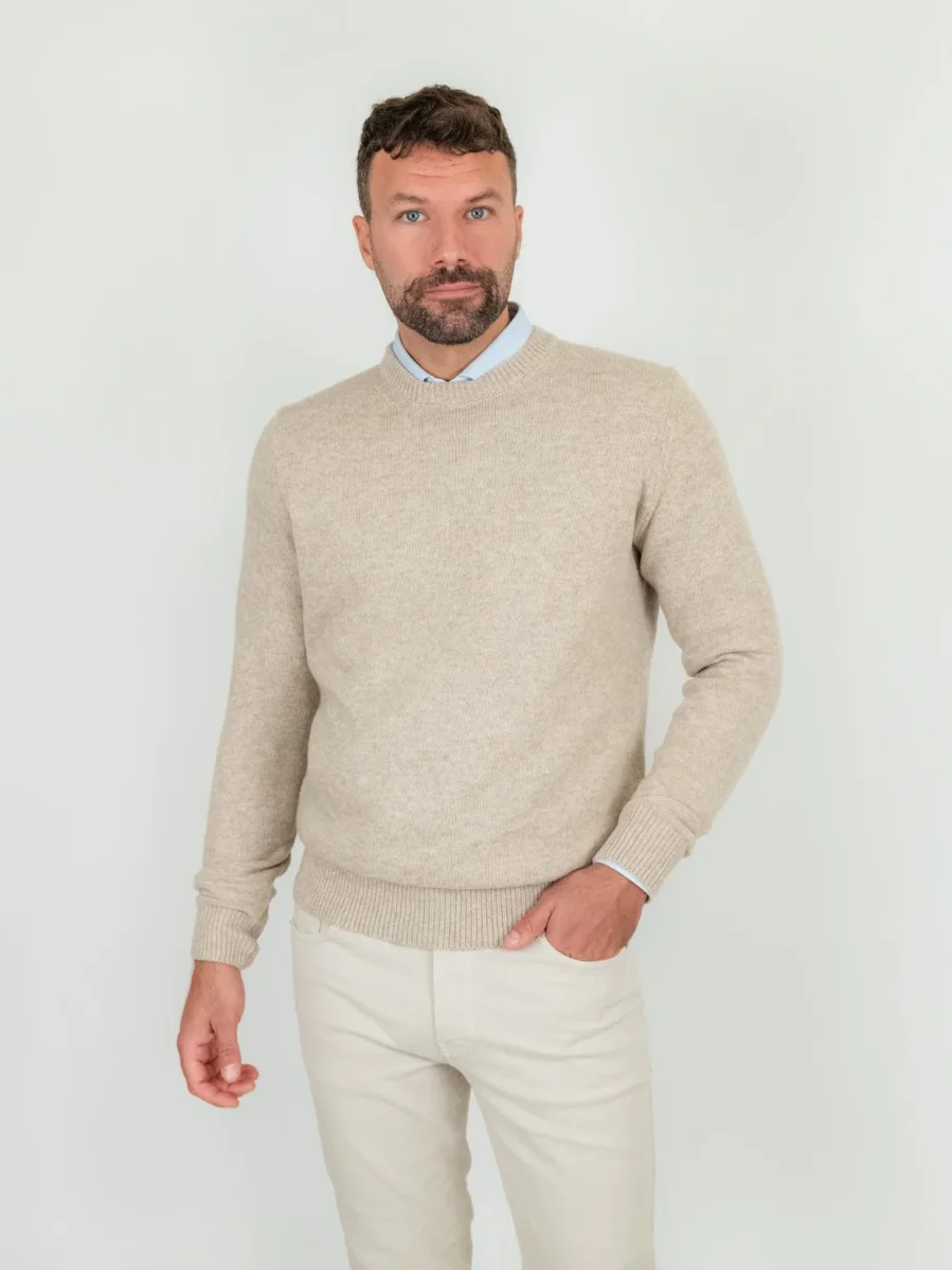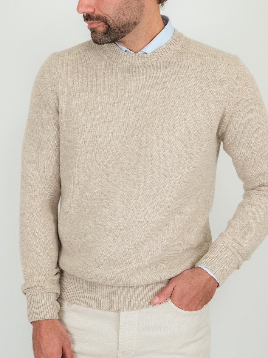 Maglione girocollo beige misto cashmere.